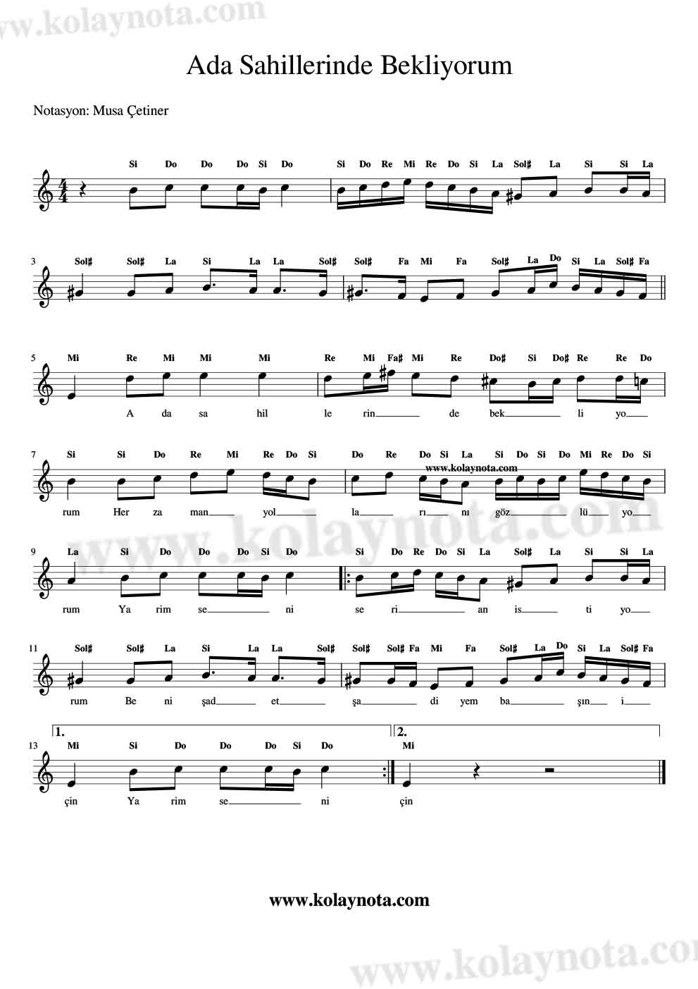 Ada Sahilleri – Kolay Nota by Musa Çetiner