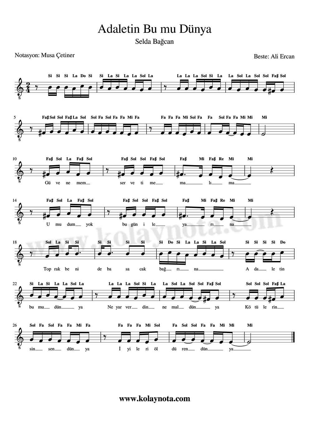 Adaletin Bu mu Dünya – Kolay Nota by Musa Çetiner