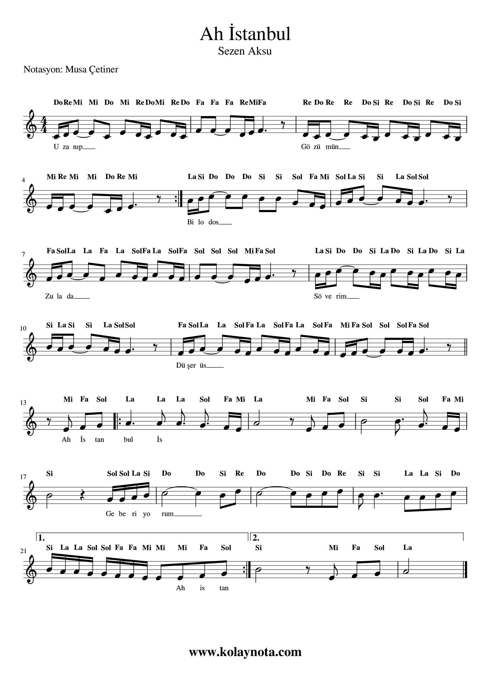 Ah İstanbul – Kolay Notası