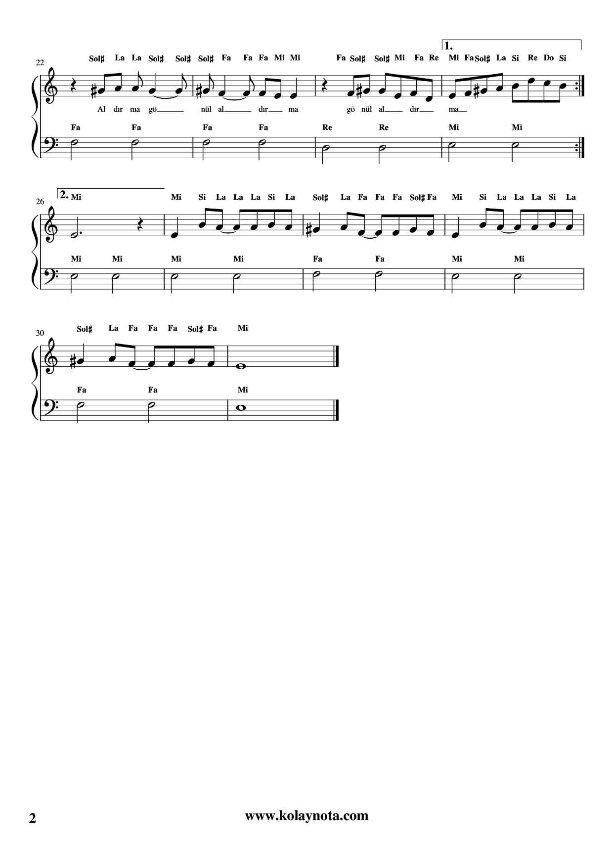 Şarkının akor eşlikli piyano düzenlemesini de hazırladım. Sol elde çok da zor olmayan bir eşlik yapısı var. Piyano çalmayı yeni öğreniyorsanız zorlanabilirsiniz.