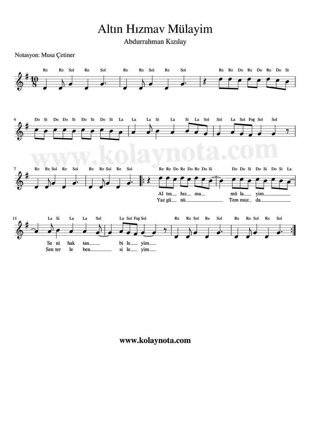 Abdurrahman Kızılay’a ait bir Kerkük türküsü. Do Re Mi ve Kolay Notasını paylaşacağım bu yazıda. Her 2 notasyonda Sol Karar sesinde yazıldı. Başarılar.