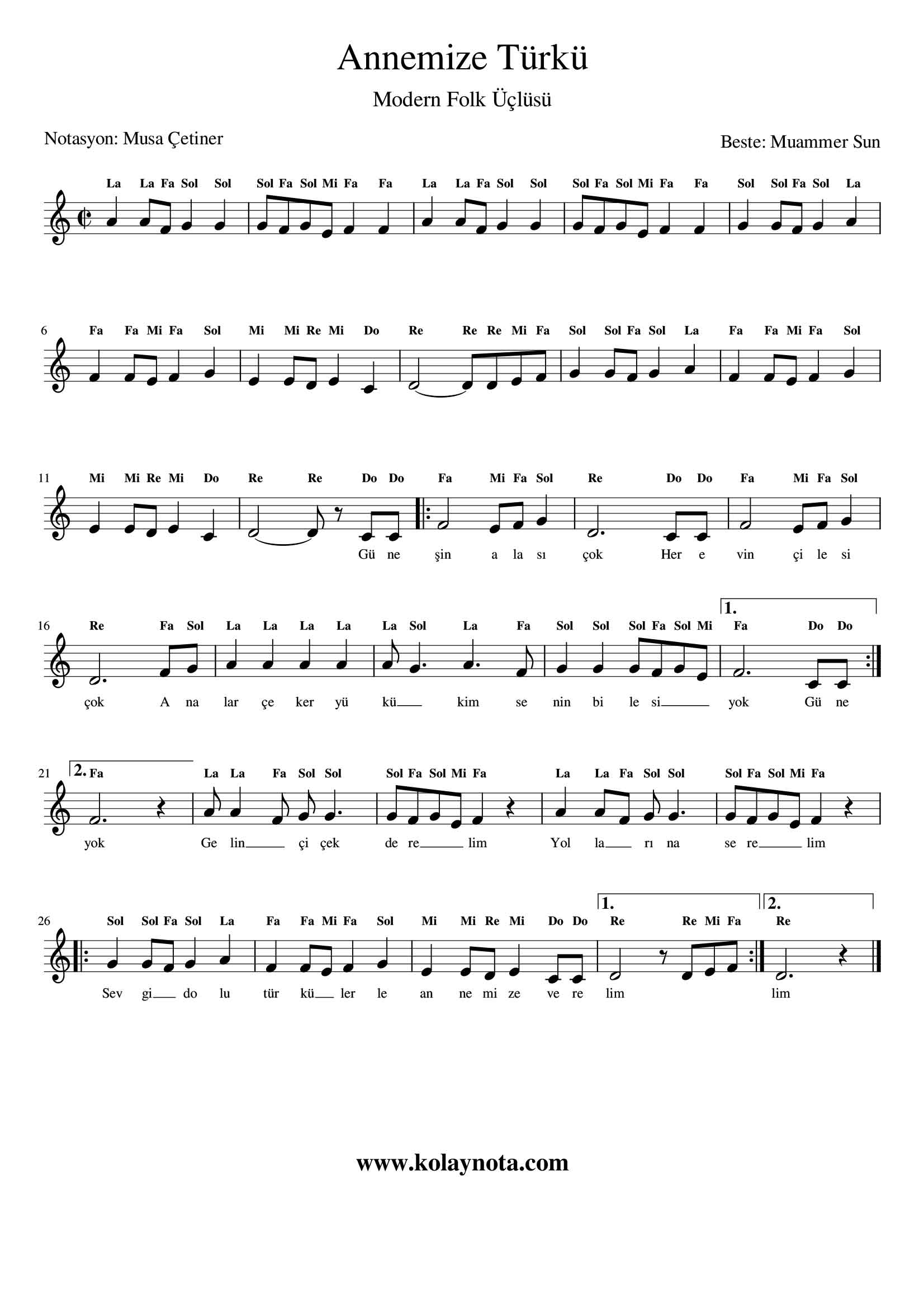 Annemize Türkü – Kolay Nota by Musa Çetiner