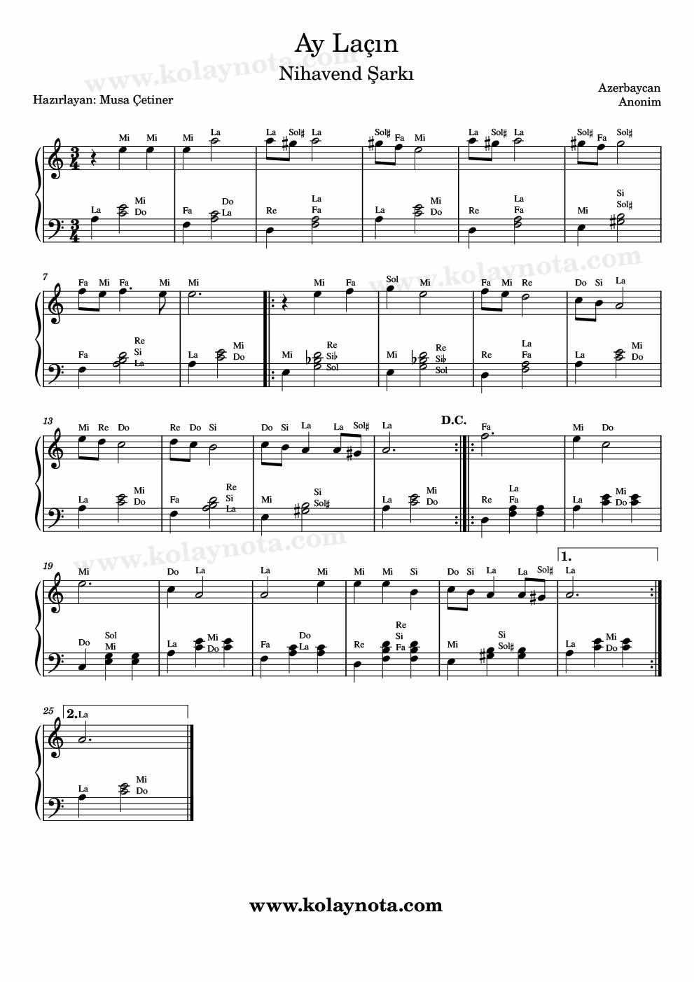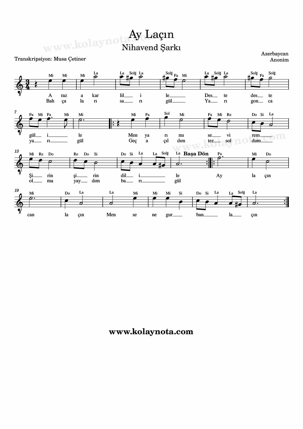 Laçın şarkısının notası bu yazının konusuydu. Azerbaycan yöresine ait şarkılara sitemde ulaşabilir, repertuarınızı geliştirebilirsiniz. Sitedeki notasyonları keman, melodika, bağlama, flüt, org gibi enstrümanlarda çalabilirsiniz. Teşekkürler.