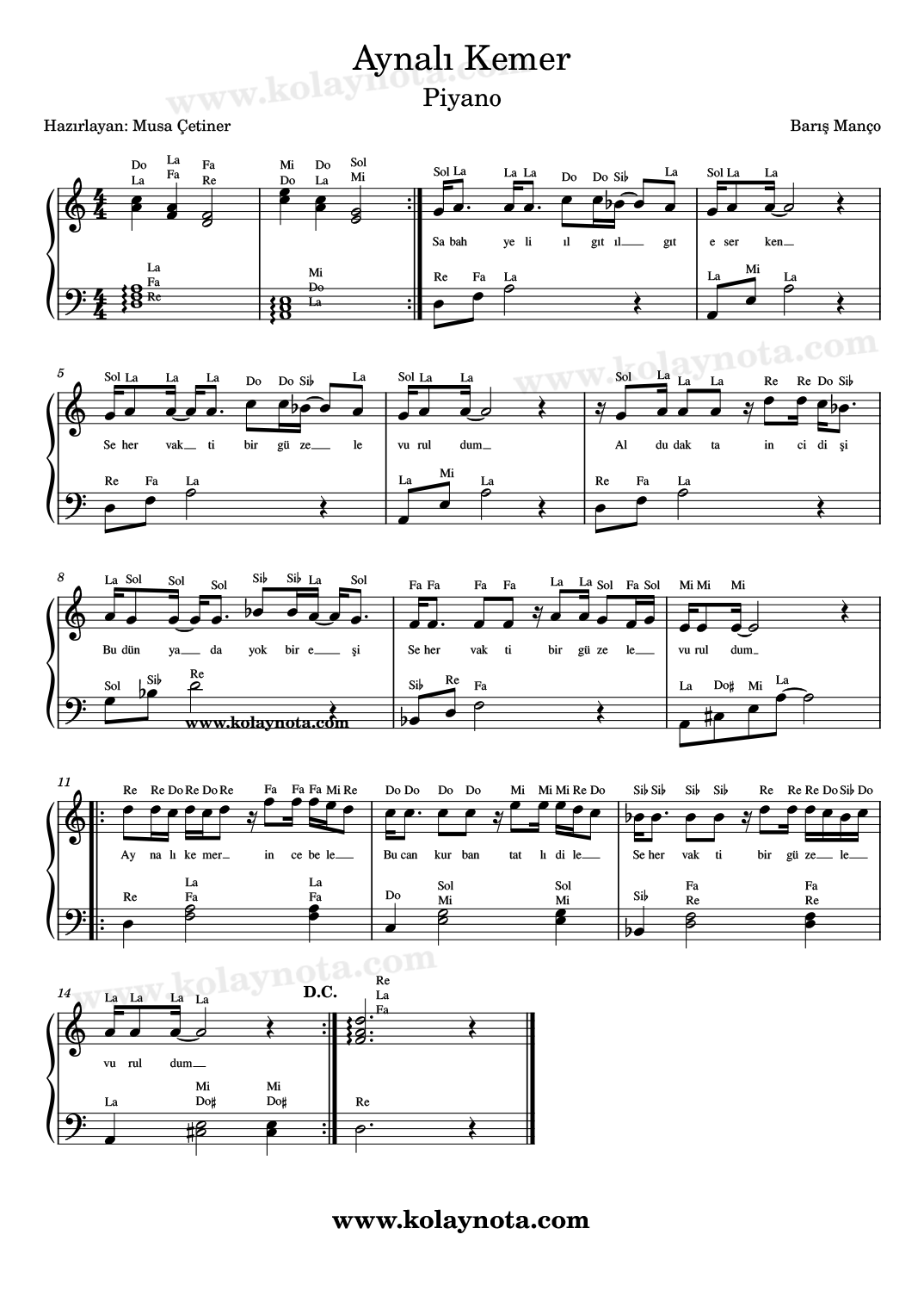Aynalı Kemer Do Re Mi ve Kolay Notaları