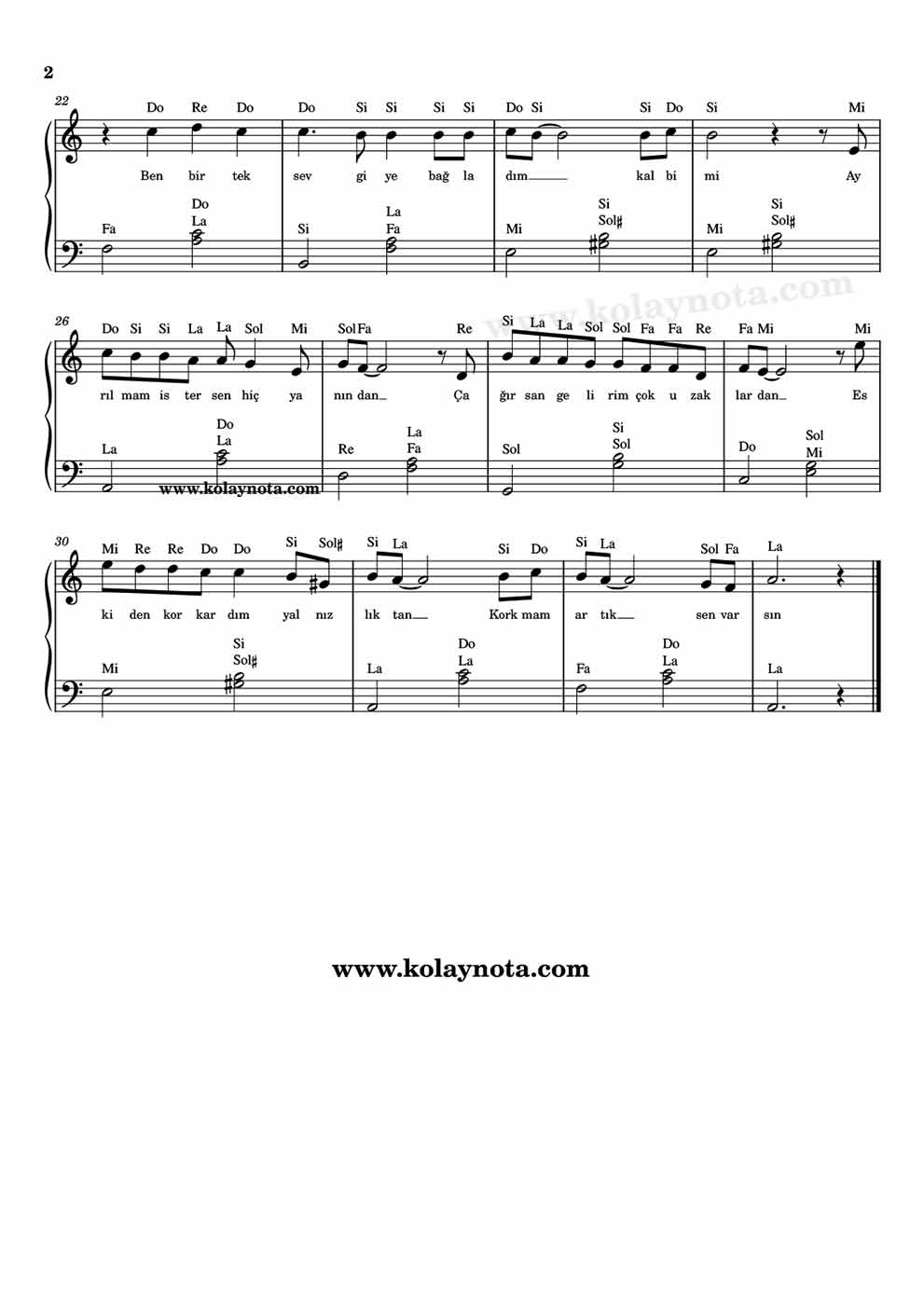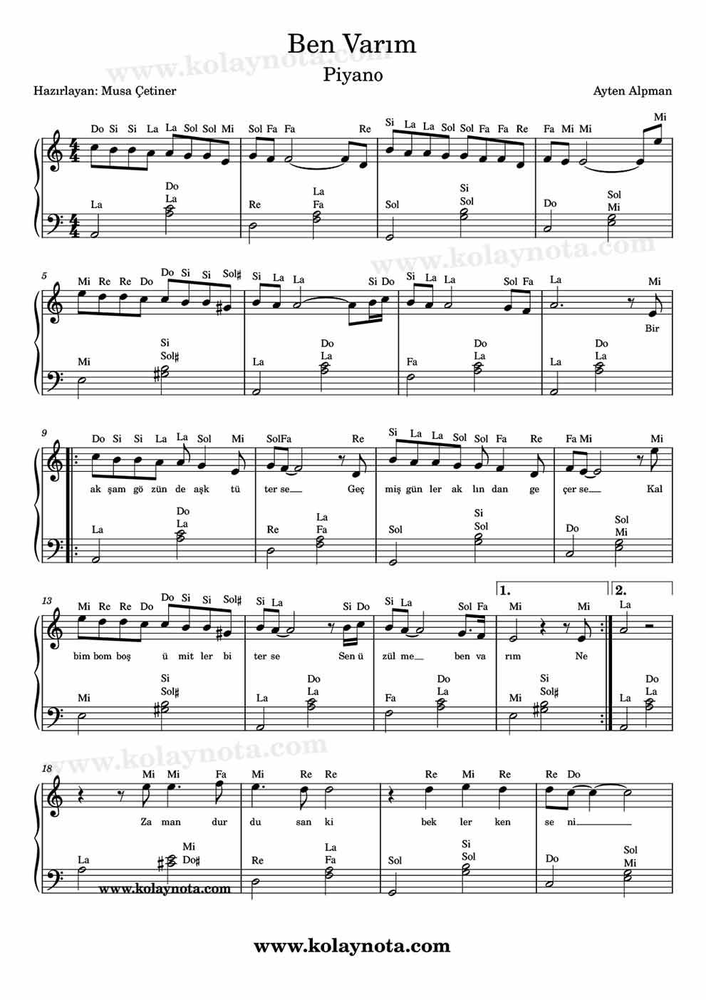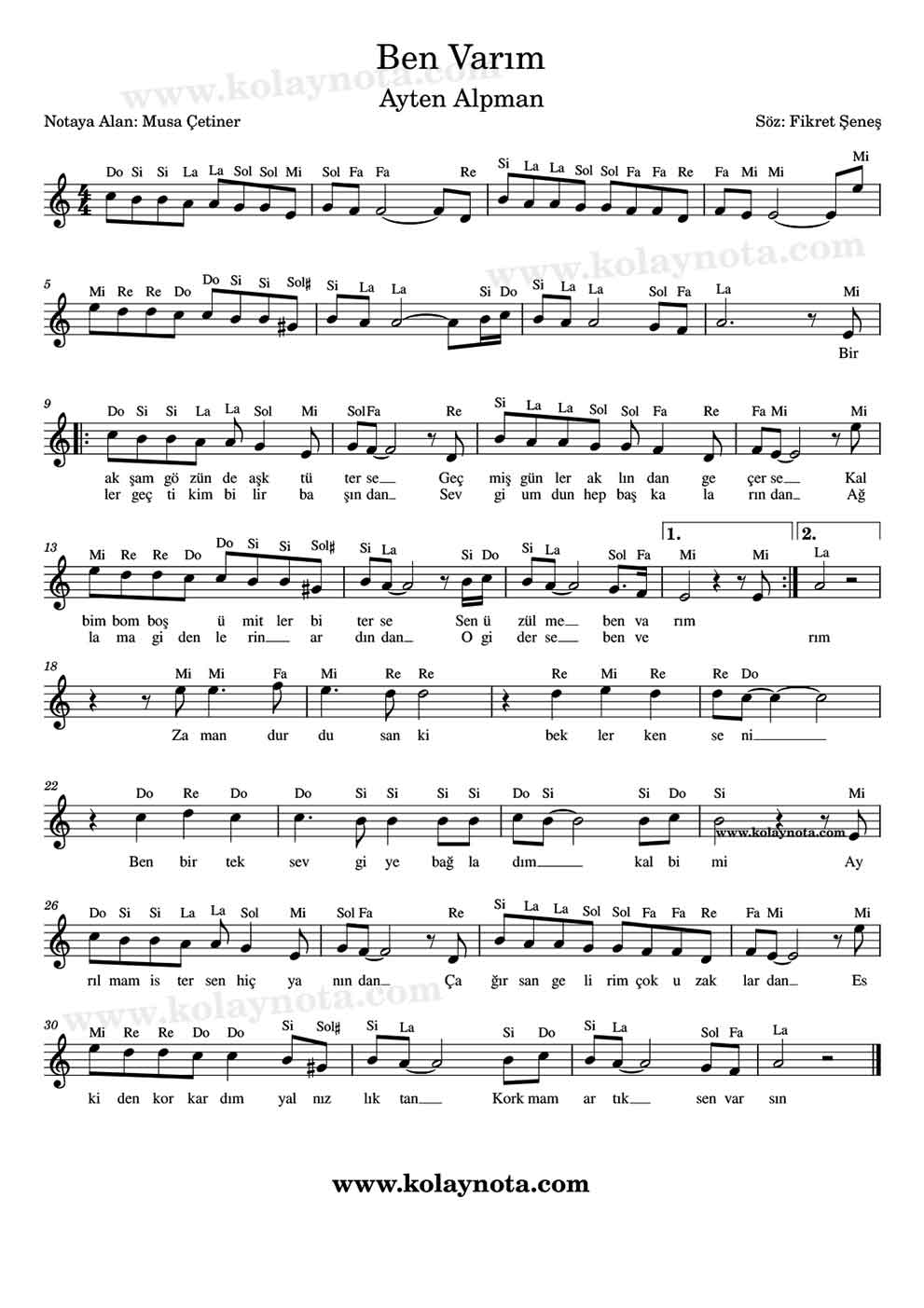 Ben Varım – Kolay Nota