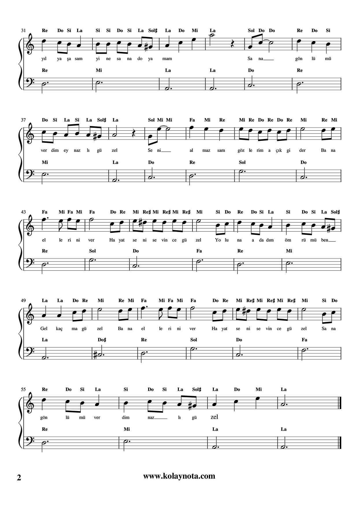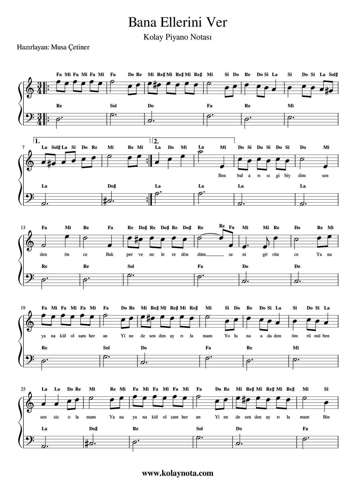Bana Ellerini Ver – Kolay Piyano Notası – 2