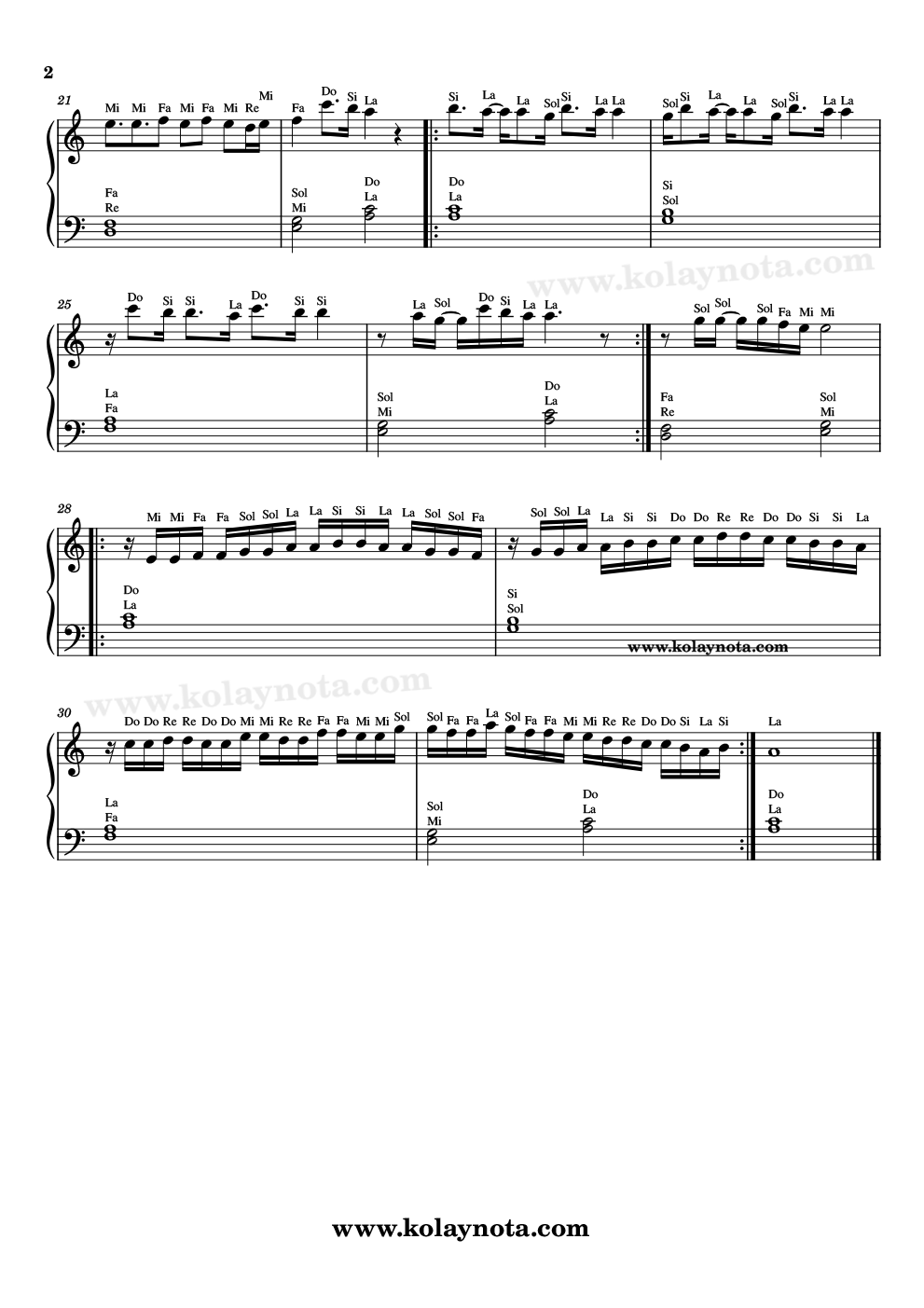 Piyano düzenlemesini kolay biçimde hazırladım Sol elde 2 sesli akorlardan oluşan bir eşlik var. Youtube kanalımdaki videosunu izleyerek doğru bir şekilde çalışabilirsiniz