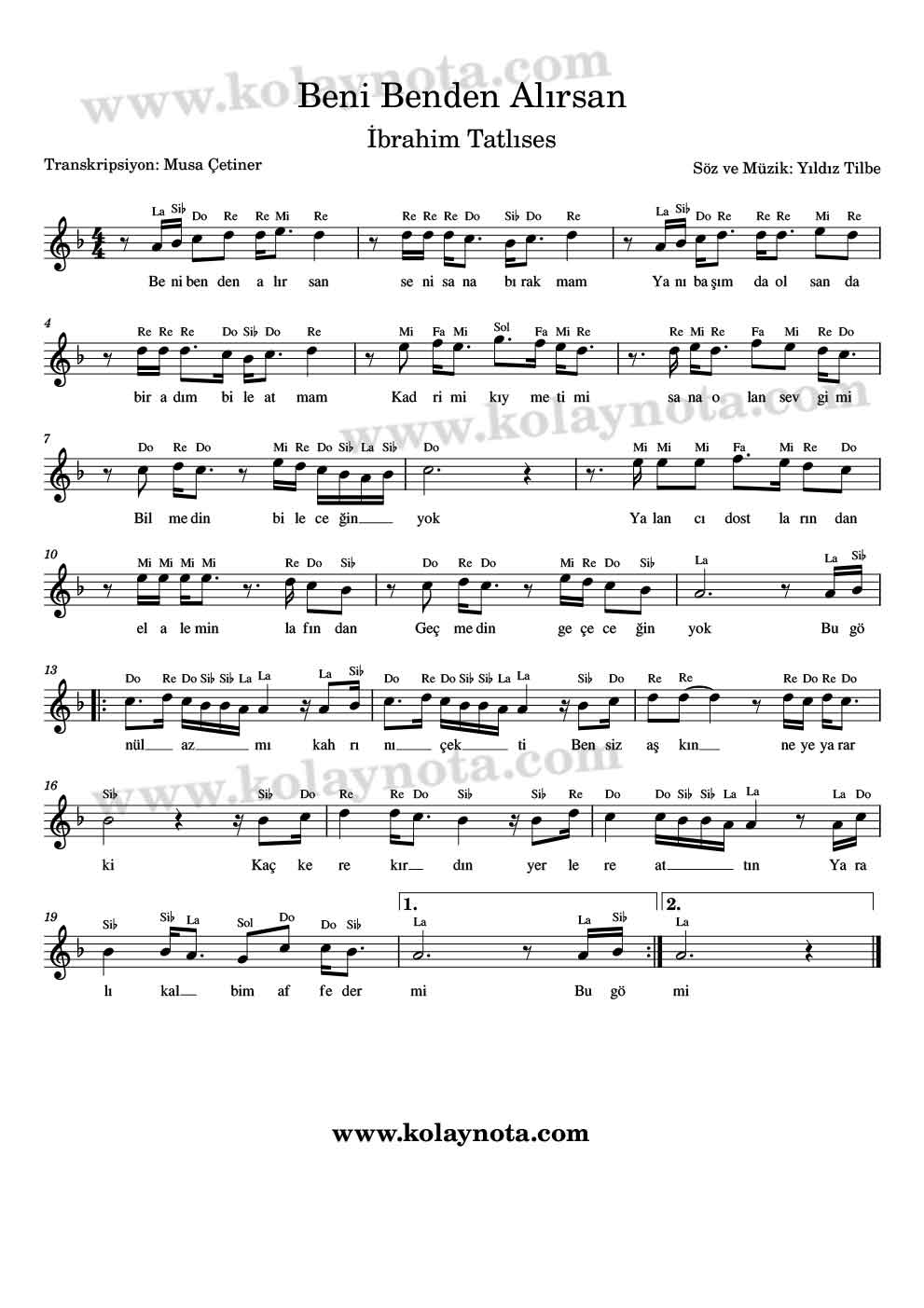 Beni Benden Alırsan Seni Sana Bırakmam Nota
