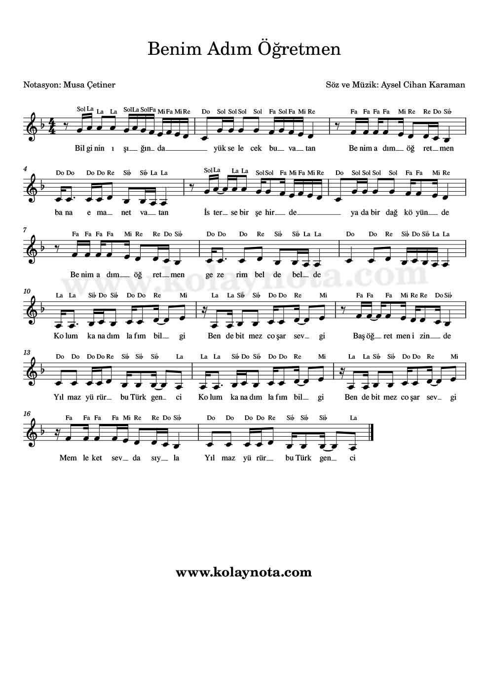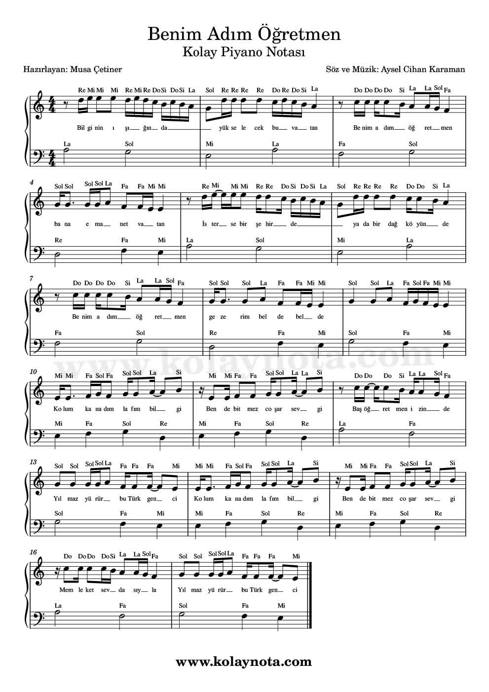 Benim Adım Öğretmen – Kolay Nota ve Piyano Düzenlemesi