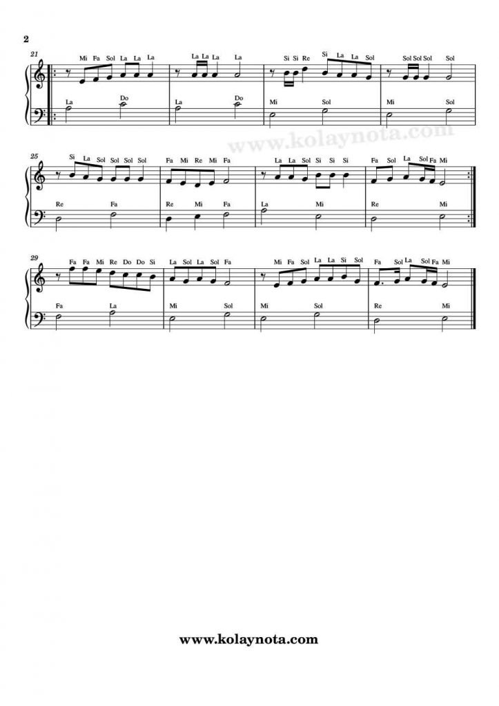 Piyano düzenlemesini kolay piyano biçiminde hazırladım. Sol elde çoğunlukla tek sesli bir eşlik var. Youtube kanalıma videosunu yükledim, izleyip doğru bir şekilde çalışabilirsiniz.