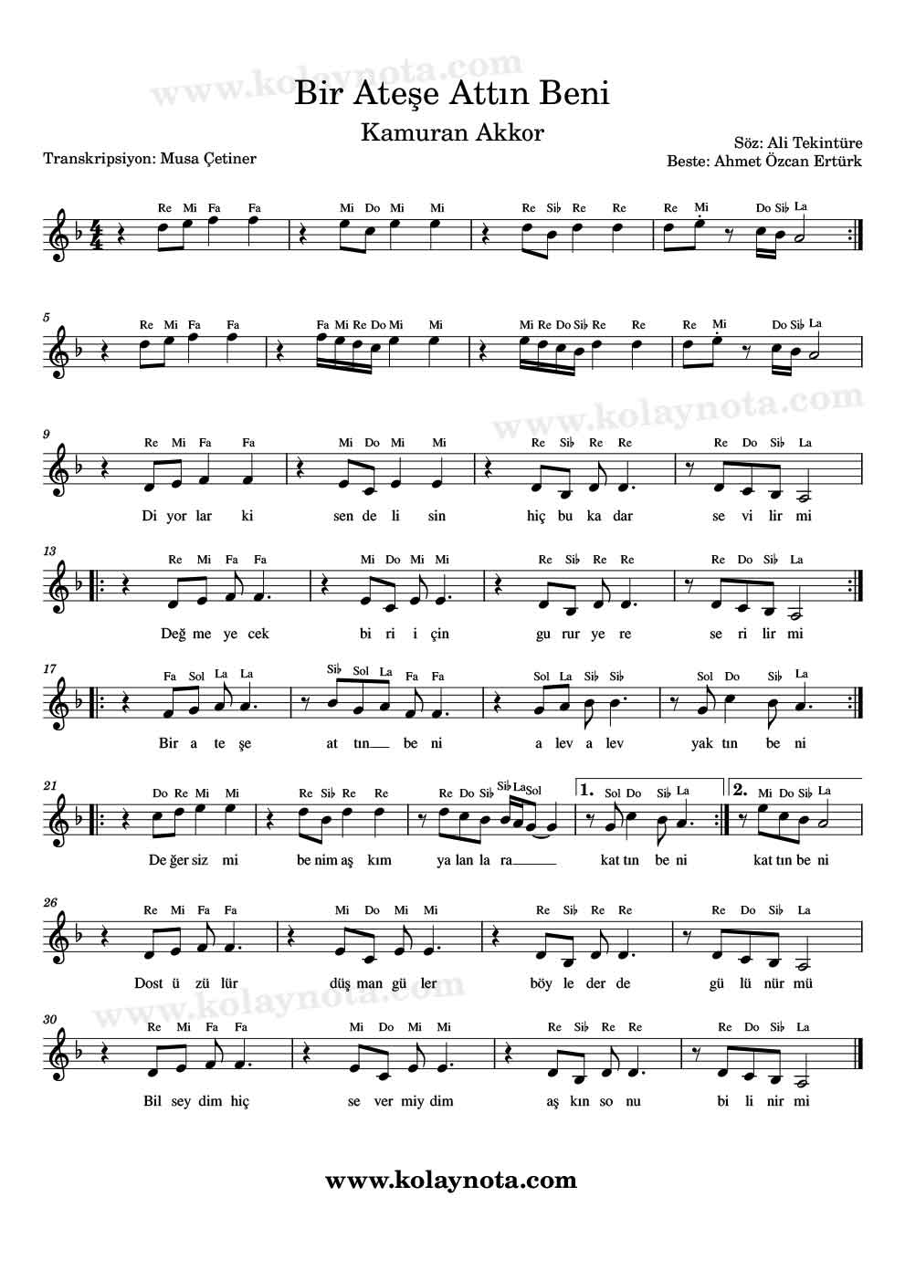 Kamuran Akkor’un seslendirdiği, sözleri Ali Tekintüre, bestesi Ahmet Özcan Ertürk’e ait olan bir şarkı. Kürdi dizisi üzerine bestelenmiş. La Karar sesinde kolay notası ve Mi Karar sesinde Do Re Mi Notasını hazırladım. Çok istenen bir notaydı, umarım beğenirsiniz.