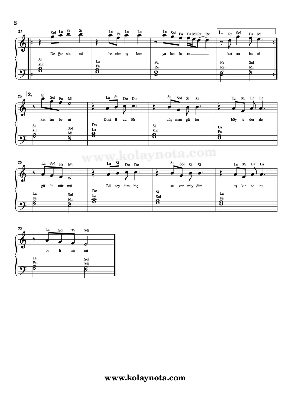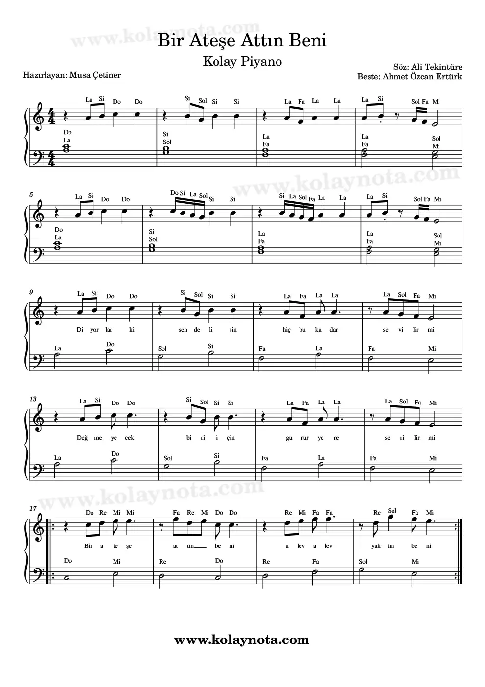 Piyano düzenlemesini kolay biçimde hazırladım. Sol elde bazı yerlerde 2 sesli akorlar bazı yerlerde tek sesli bir eşlik var. Youtube kanalımda videosunu izleyerek çalışabilirsiniz.