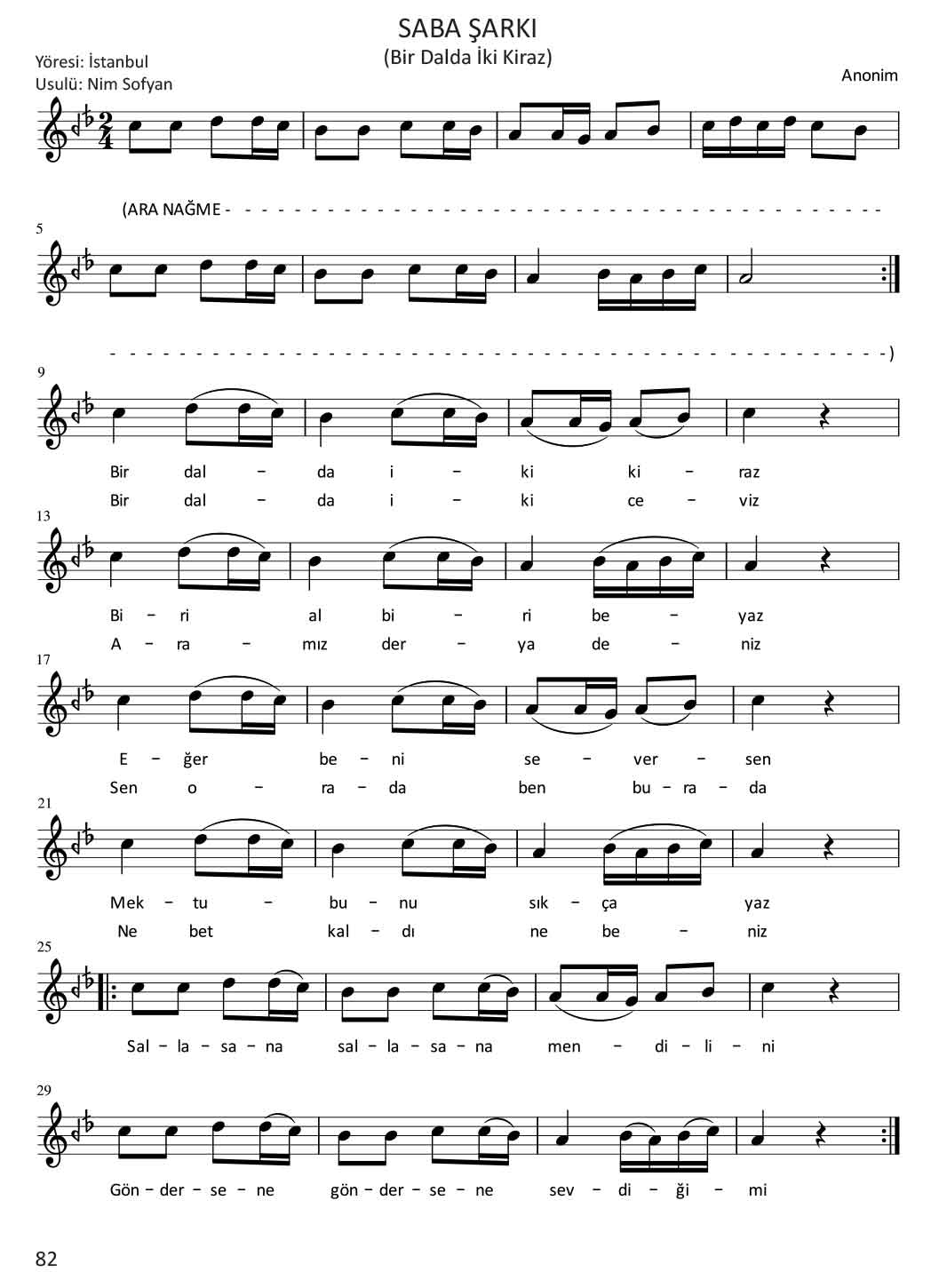 Bir Dalda İki Kiraz MEB Müzik Kitabı Notası