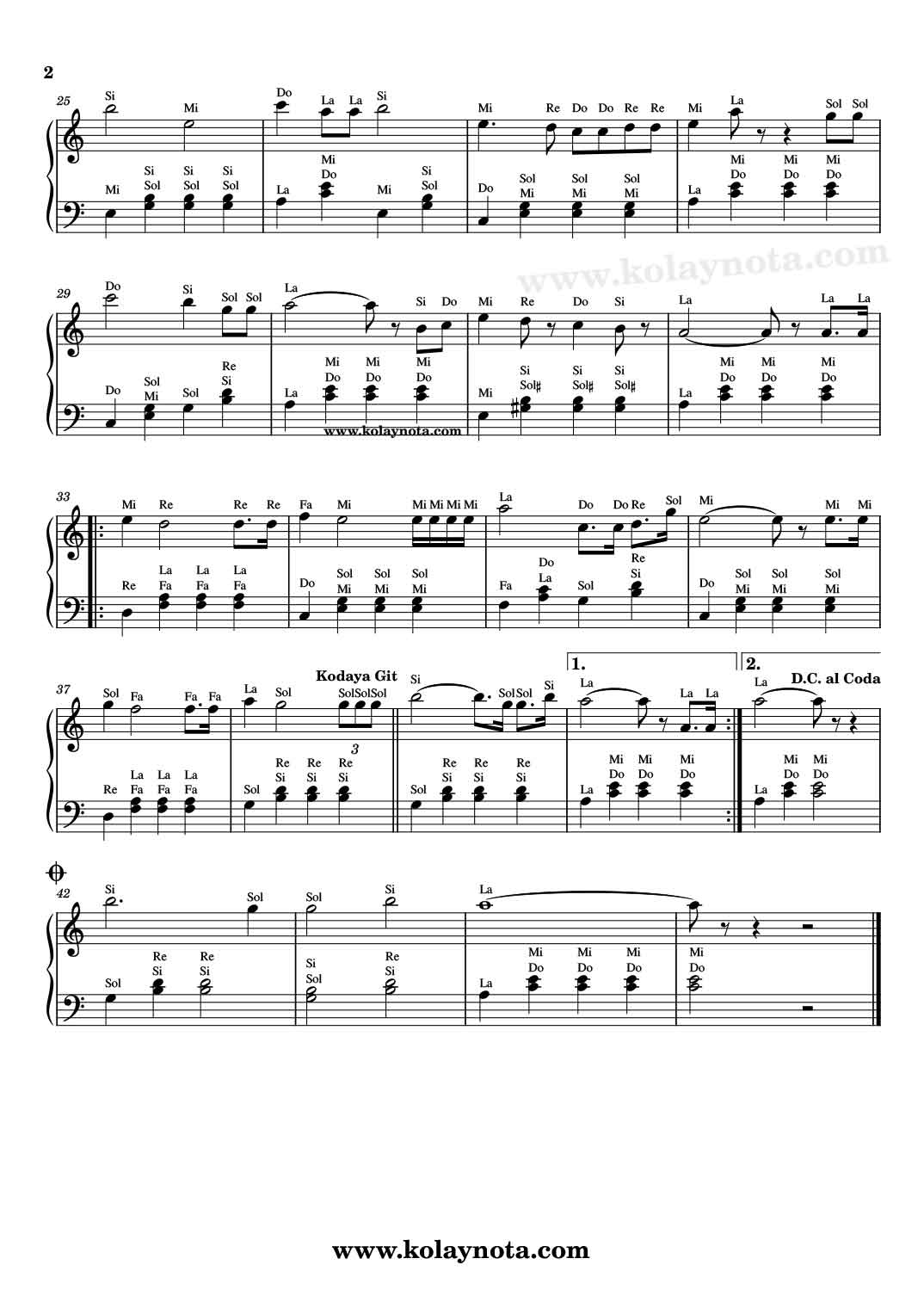 Keman, Piyano, Flüt, Melodika, Org Notaları