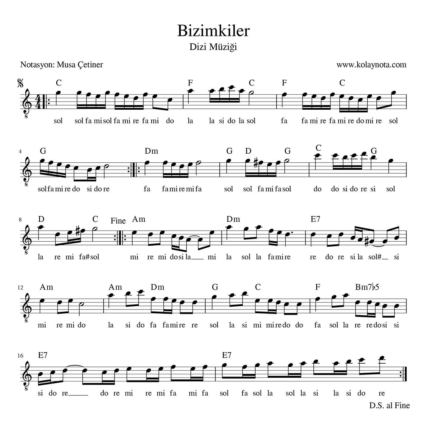 Bizimkiler dizisinin bir kuşağın aklına kazınmış müziği. Kolay notasını paylaşacağım bu yazıda. Başarılar.