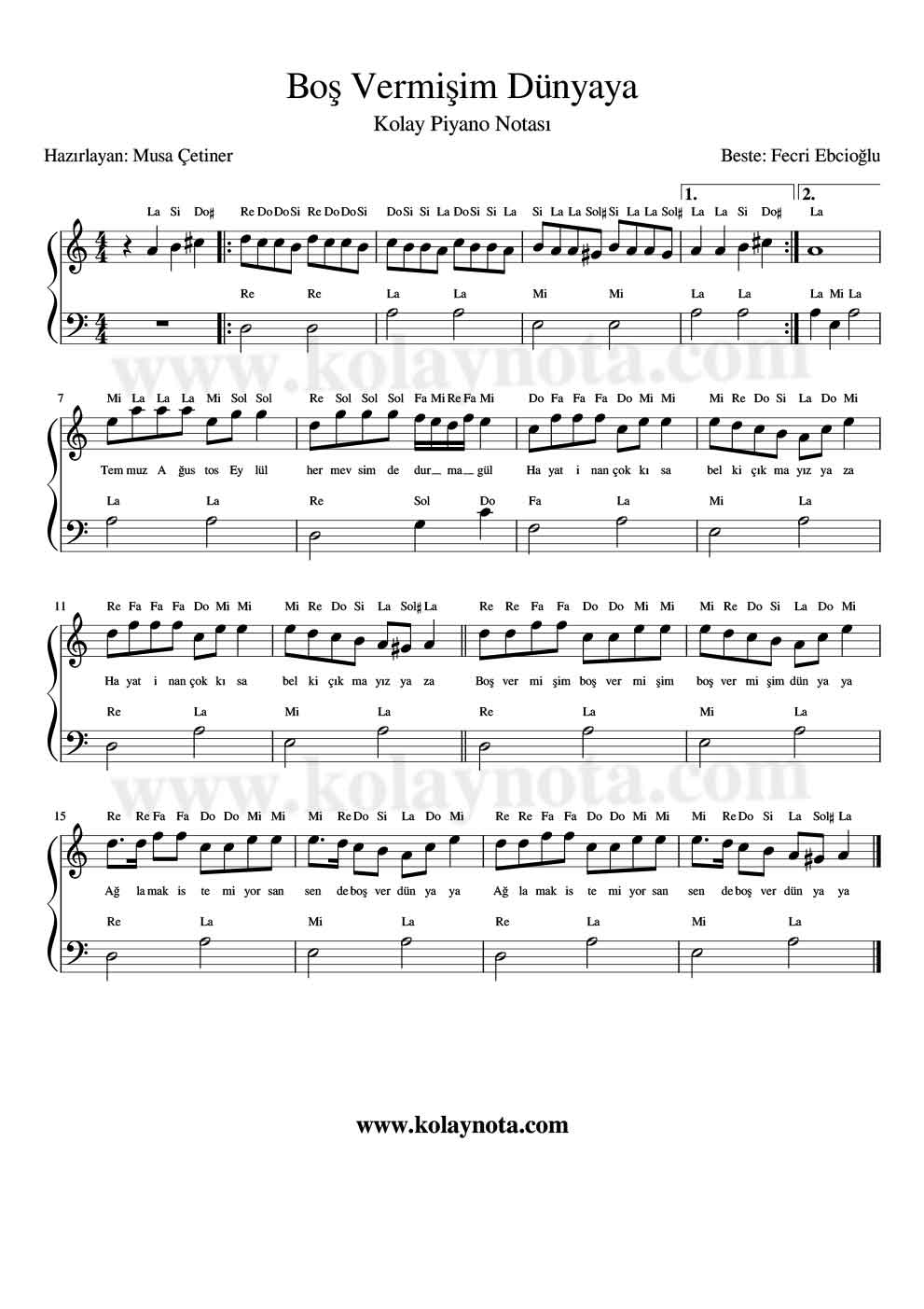 Boş Vermişim Dünyaya – Do Re Mi Notaları – Piyano Düzenlemesi