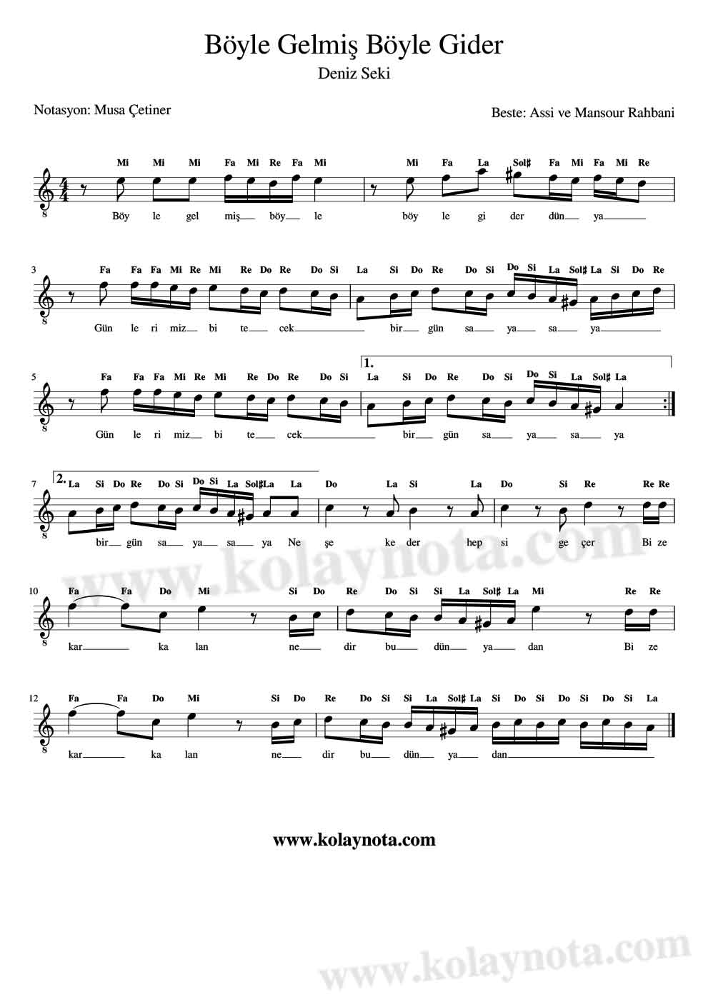 Böyle Gelmiş Böyle Geçer – Kolay Notası