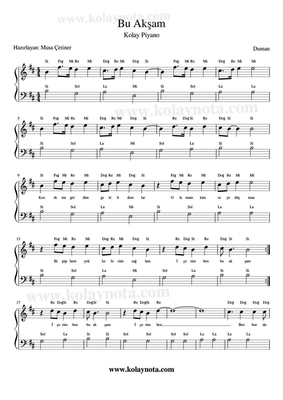 Piyano Düzenlemesini kolay piyano biçiminde hazırladım. Sol elde tek sesli bir eşlik var, şarkının orjinal tonunda hazırlandı. Yotube kanalıma videosunu da yükledim, izleyip doğru bir şekilde çalışabilirsiniz.