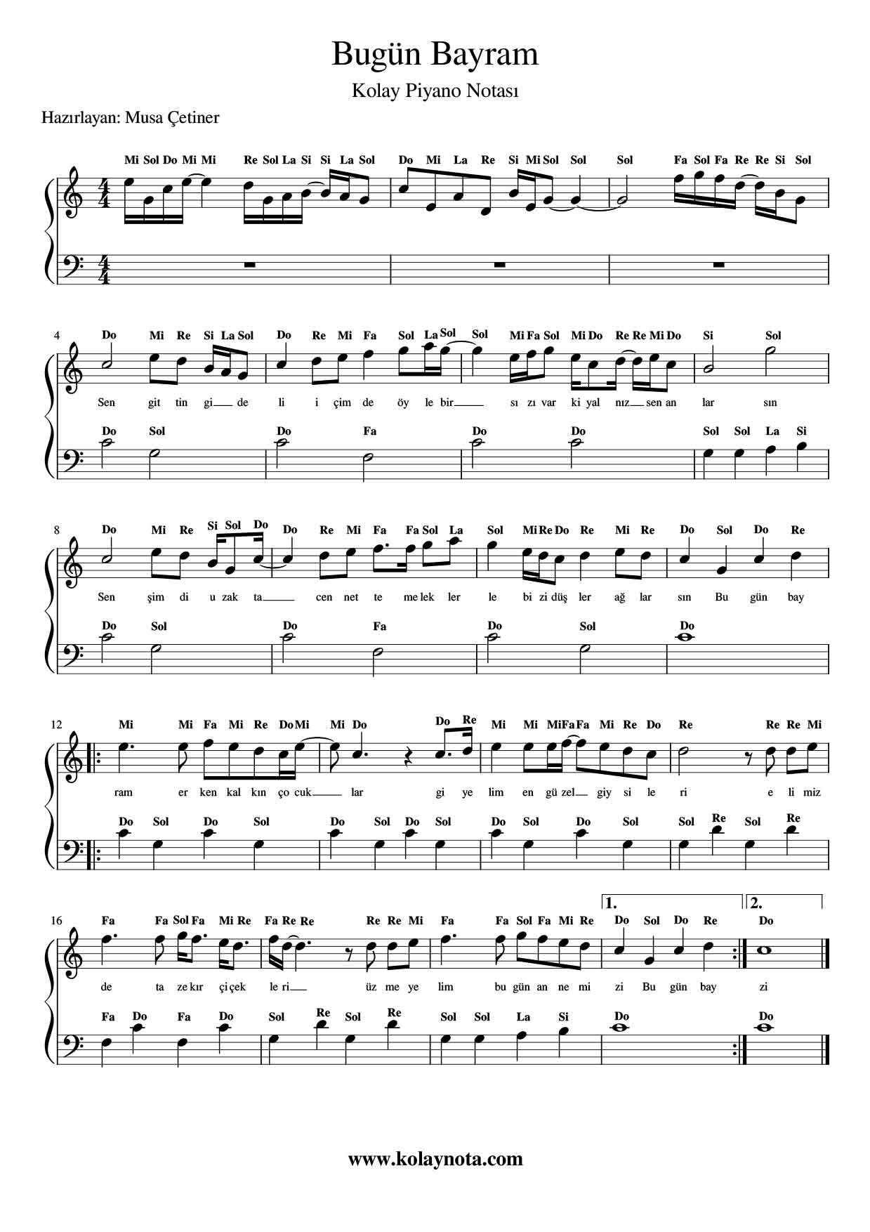 Barış Manço’nun çok sevilen bir şarkısı. Kolay Piyano biçiminde düzenledim. Notalarını pdf ve jpg biçiminde görebilirsiniz. Video linkini de ekliyorum, Youtube kanalıma da abone olursanız sevinirim. Teşekkürler