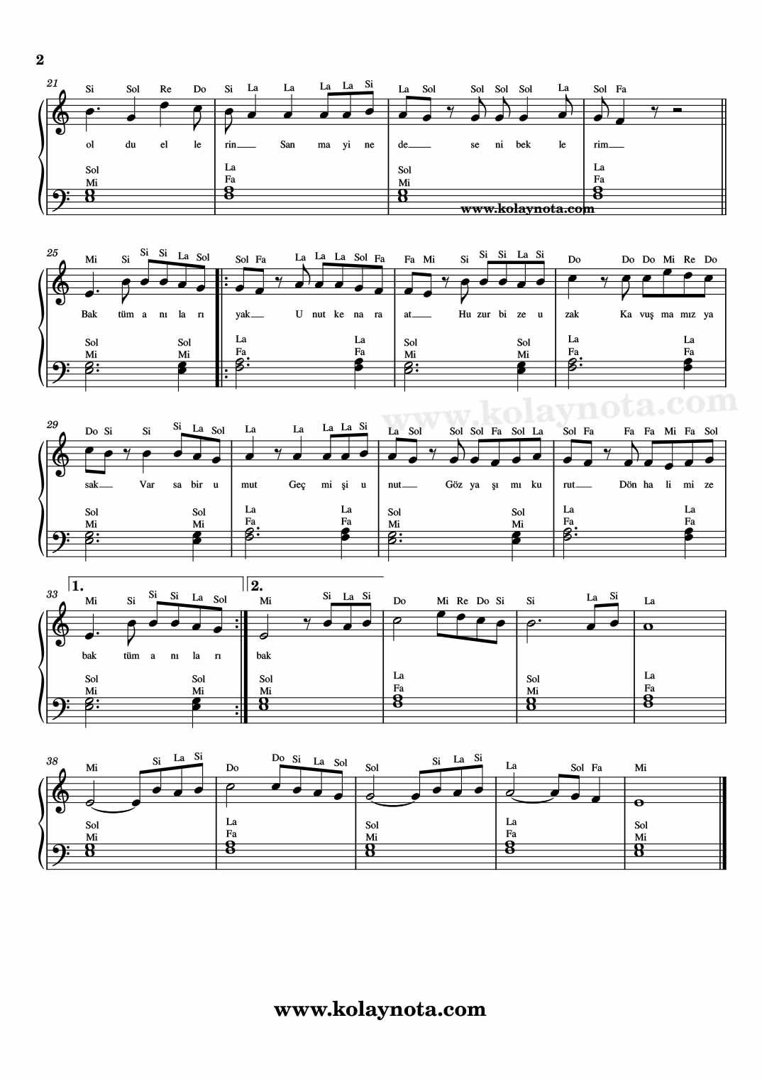 Piyano düzenlemesini kolay biçimde hazırladım. Sol elde 2 sesli akorlardan oluşan bir eşlik var. Youtube kanalımdaki videosunu izleyerek doğru bir şekilde çalışabilirsiniz. Aşağıya linki ekliyorum.