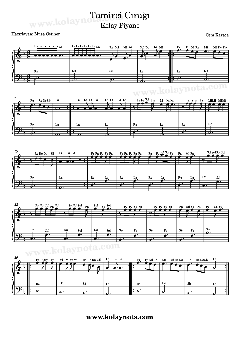 Piyano düzenlemesini kolay biçimde hazırladım. Sol elde tek sesli bir eşlik var. Youtube kanalımdaki videosunu izleyerek doğru bir şekilde çalışabilirsiniz. Kanalıma abone olursanız sevinirim. Teşekkürler.