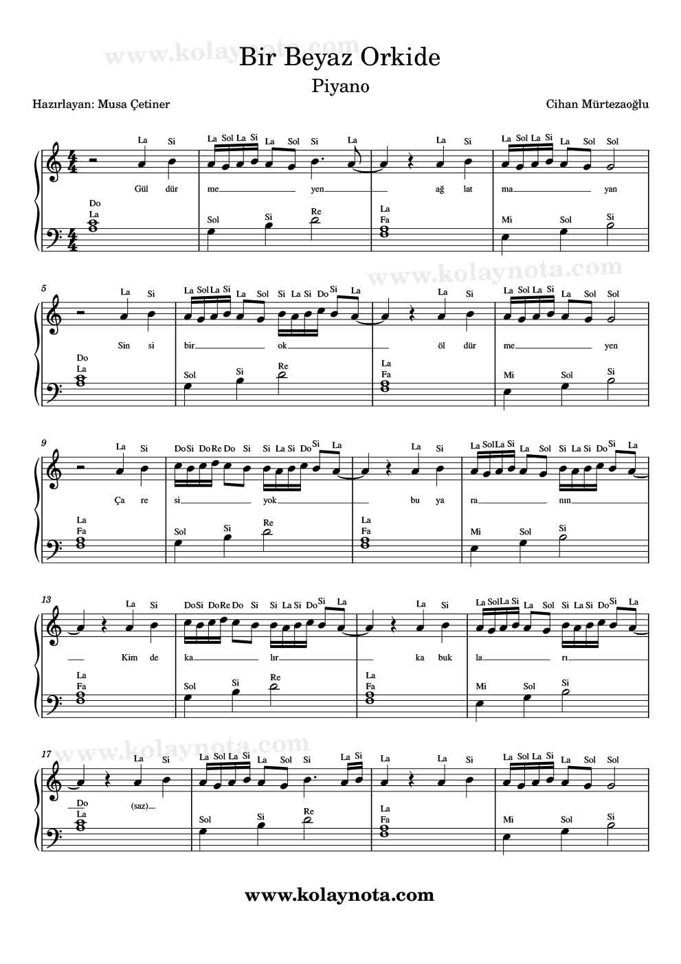 Bir Beyaz Orkide; Cihan Mürtezaoğlu’nun bir şarkısı. La Minör tonunda bir şarkı, aynı tonda kolay notası ve piyano notasını hazırladım.
