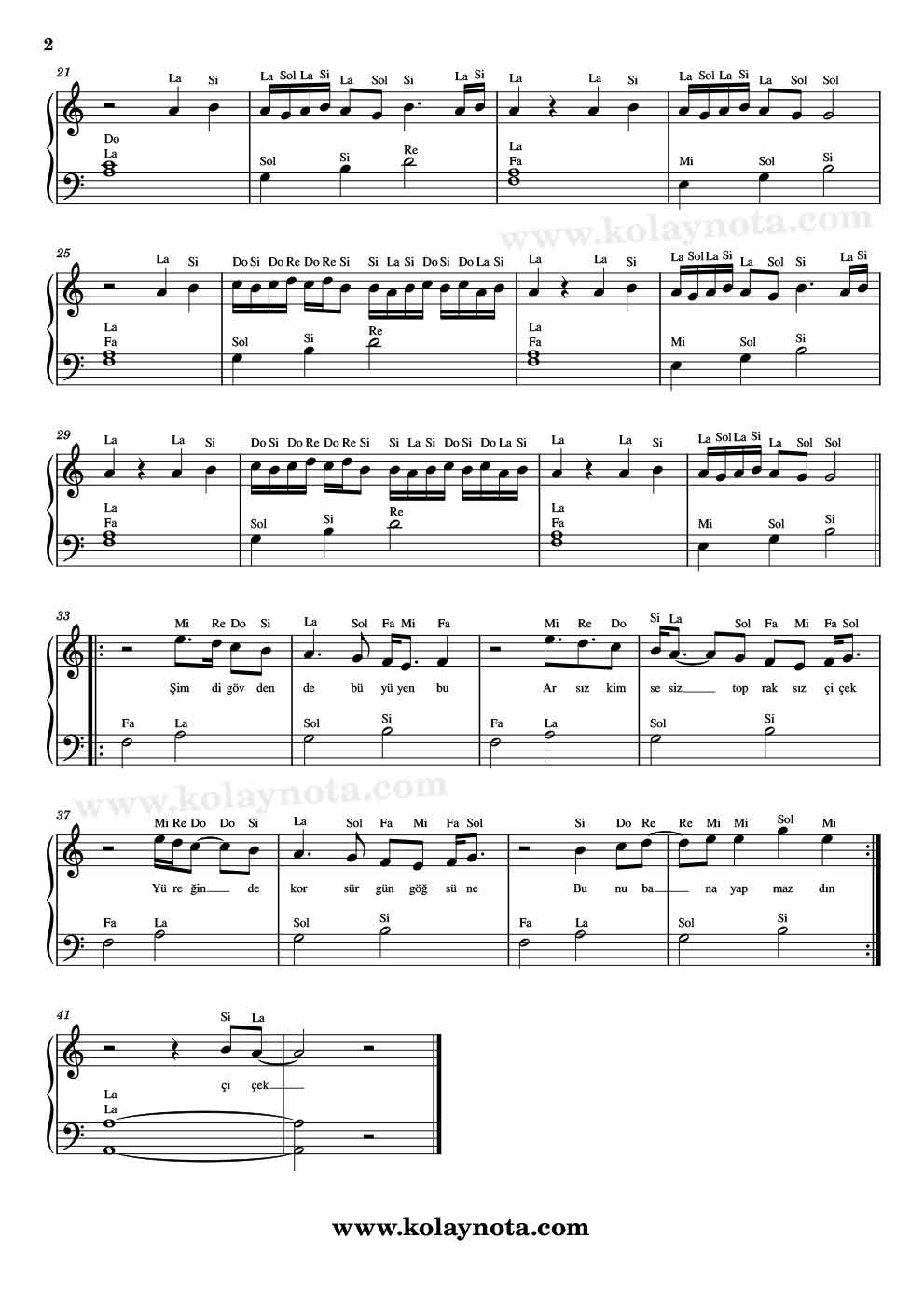 Piyano düzenlemesini akor eşlikli biçimde hazırladım. Youtube kanalıma videosunu yükledim, izleyip doğru bir şekilde çalışabilirsiniz.
