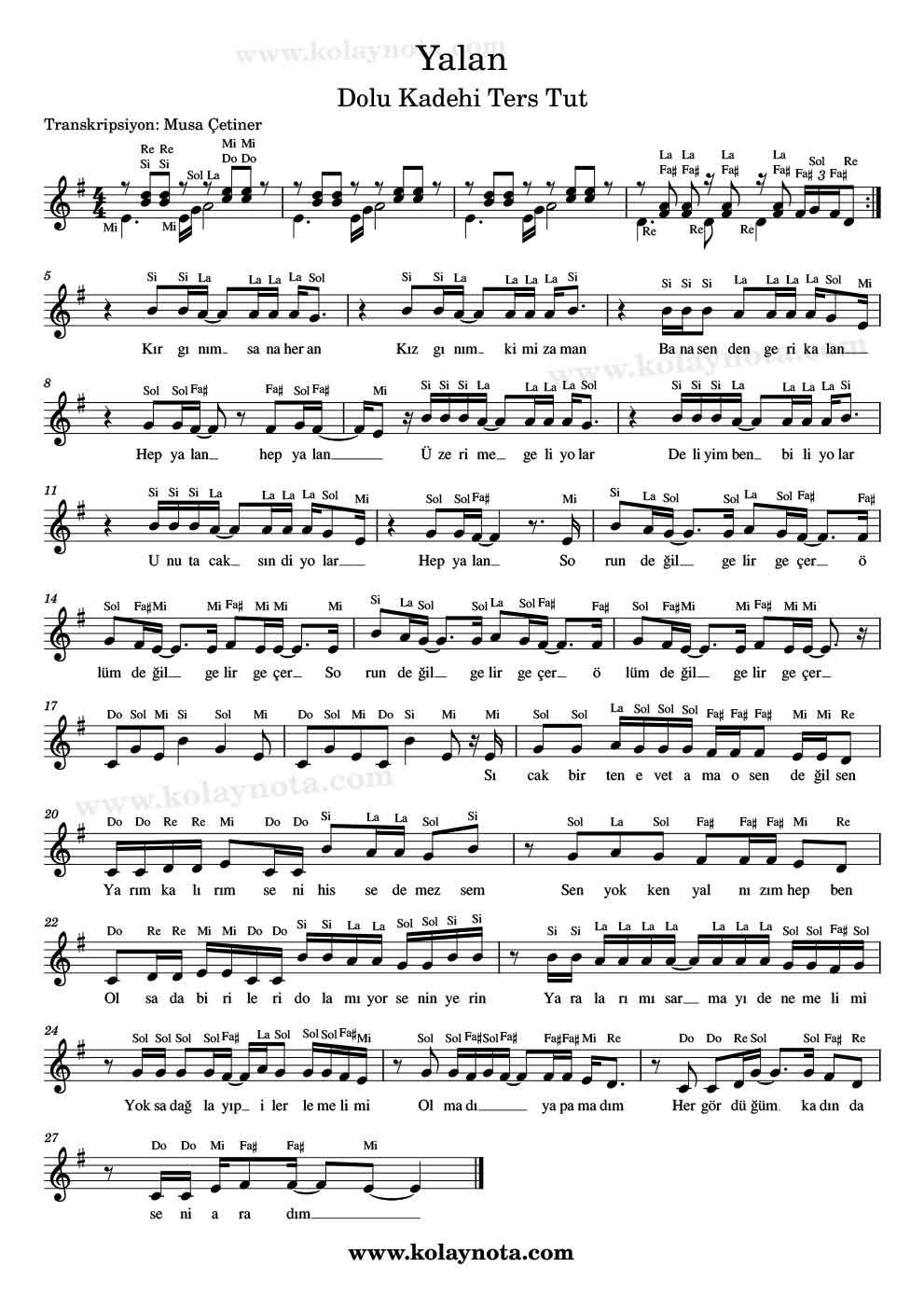 Dolu Kadehi Ters Tut – Yalan – Nota