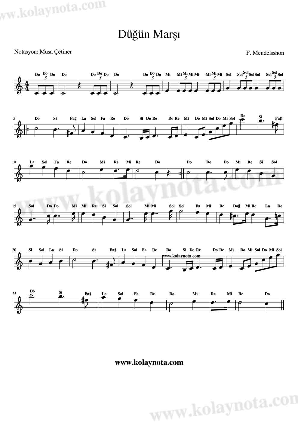 Şarkının bestecisi Felix Mendelssohn. Kolay Notasını ve Kolay Piyano düzenlemesini görebilirsiniz bu yazıda. Kolay Notasını Nota oynatıcısını da ekleyeceğim, dinleyip doğru bir biçimde çalabilirsiniz. Notalar Do Majör tonunda hazırlandı.