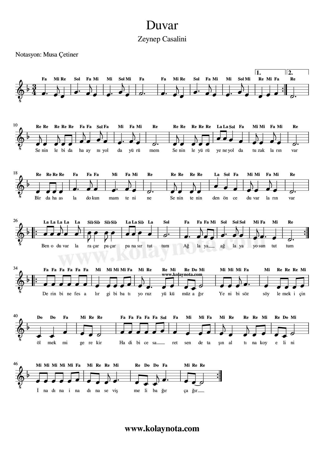 Zeynep Casalini’nin çok sevilen bir şarkısı. Sezen Aksu, Alper Nalman, Fettah Can’ın ortak bir çalışması. Kolay Notasını paylaşacağım bu yazıda. Notasyonu Re Minör tonunda hazırladım. Notasyonu da dinleyerek şarkıyı doğru bir biçimde çalabilirsiniz.