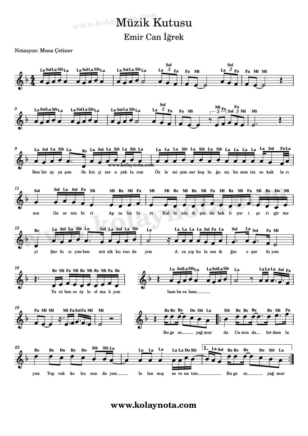Emir Can İğrek Müzik Kutusu Notaları