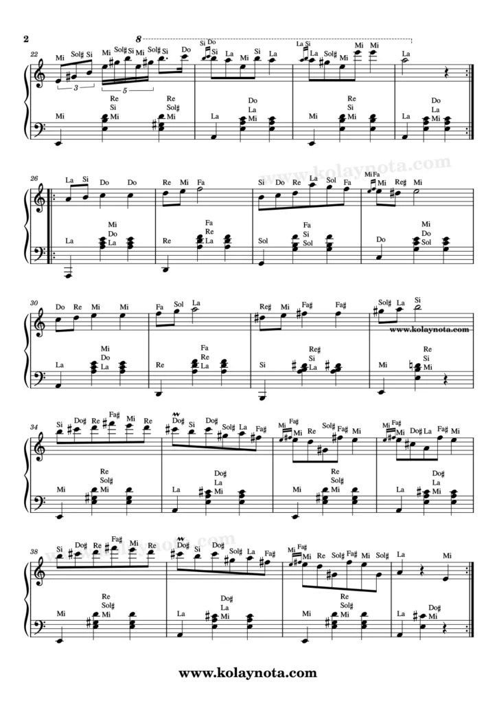 La Minör Vals – Piyano Nota