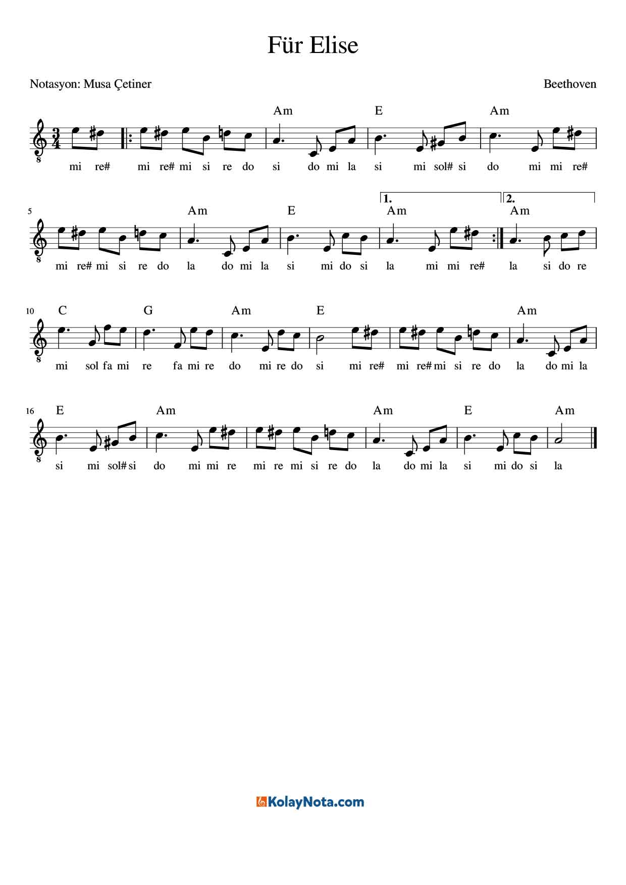 Für Elise – Kolay Nota by Musa Çetiner