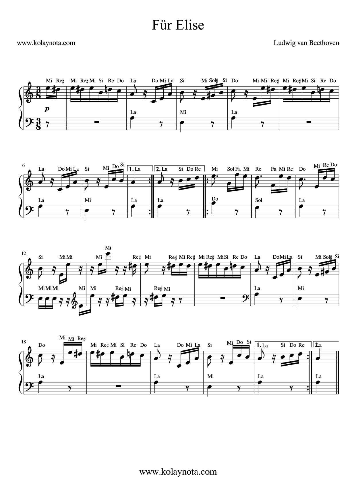 Für Elise; en çok bilinen Ludwin Van Beethoven bestesi sanırım. Kolay Piyano düzenlemesini paylaşacağım bu yazıda. Sol elde sadece tek sesli bir eşlik olacak şekilde düzenledim.