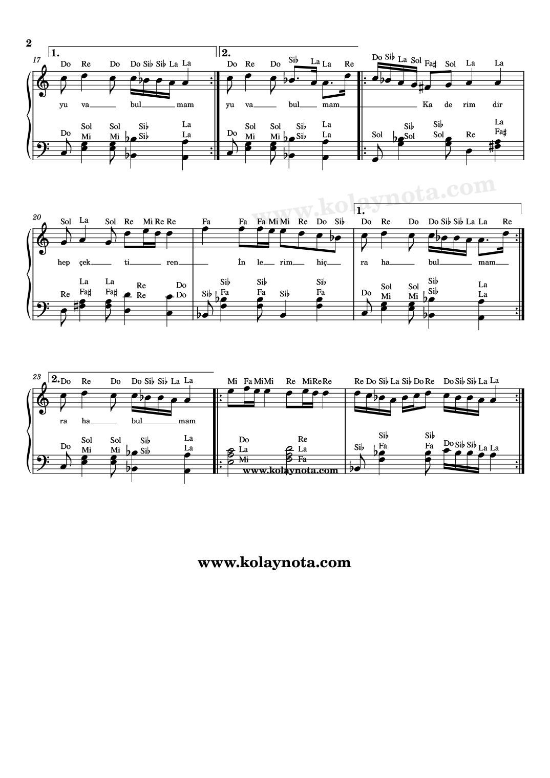 Notasyonu PDF ve imaj biçiminde görüntüleyebilirsiniz. Sitede bu şarkının kolay notasına da ulaşabilirsiniz.