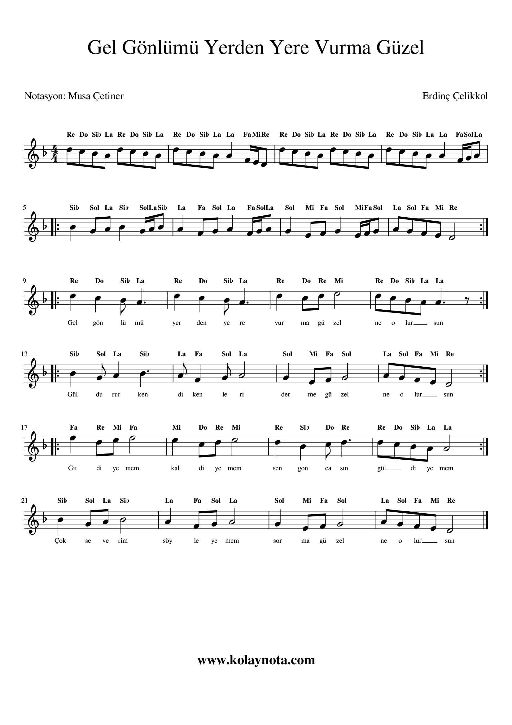 Gel Gönlümü Yerden Yere Vurma Güzel – Kolay Notası