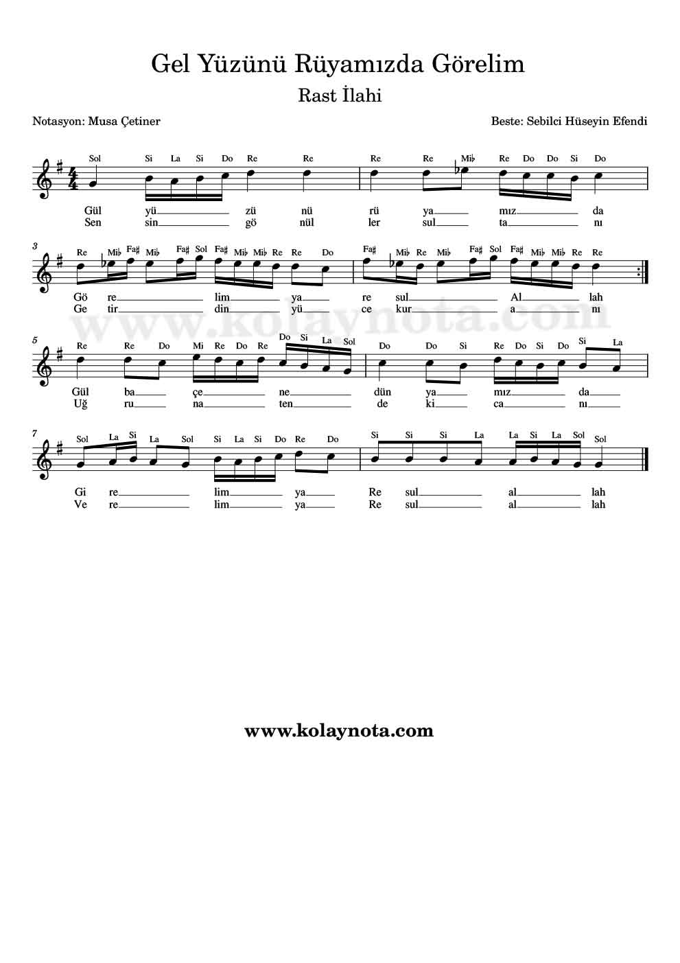Gel Yüzünü Rüyamızda Görelim Notaları