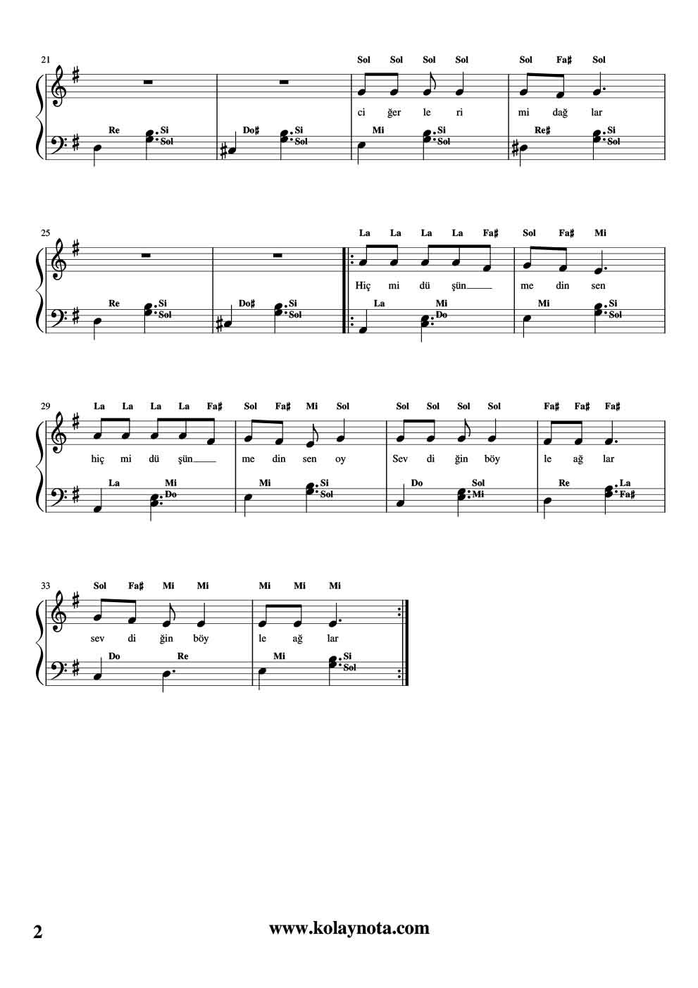 Kazım Koyuncu ve Şevval Sam’ın düetiyle tanınan bu güzel şarkının kolay şekilde düzenlenmiş piyano notalarını görebilirsiniz.
