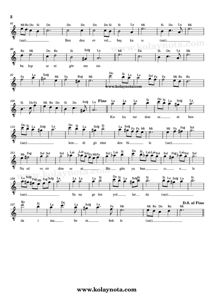 Gözlerinin İçine Başka Hayal Girmesin – Kolay Nota