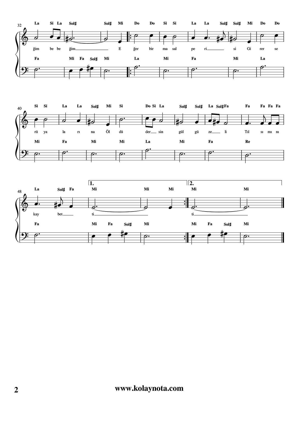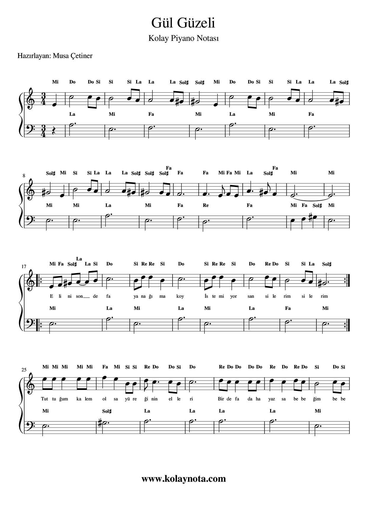 Gül Güzeli – Kolay Piyano Notası