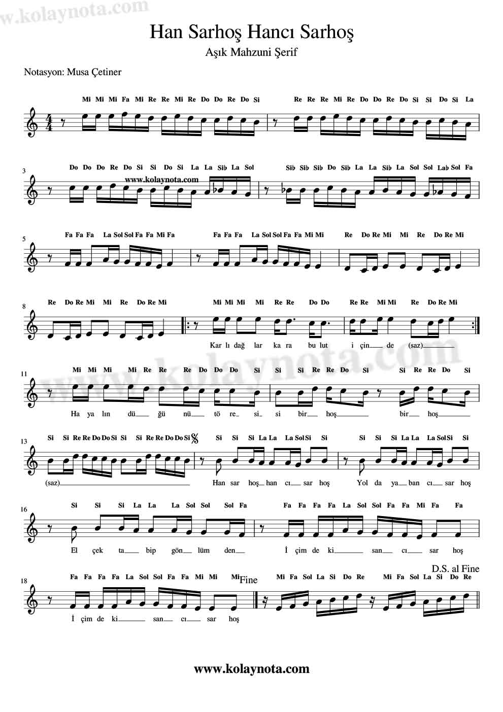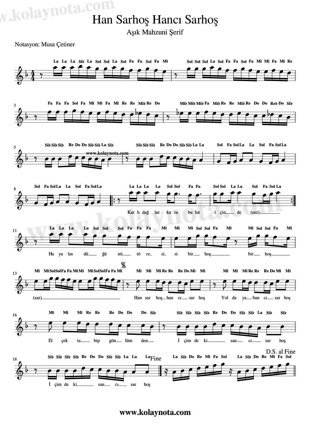 Han Sarhoş Hancı Sarhoş – Kolay Notası