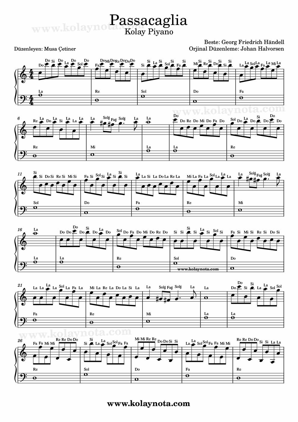 Passacaglia eserinin kolay piyano notası bu yazının konusuydu. Piyano eğitiminiz için düzenlediğim birçok şarkının notasına erişebilir, kendinizi geliştirebilirsiniz. Soru ve isteklerinizi yorumlara yazmayı unutmayın. Teşekkürler.