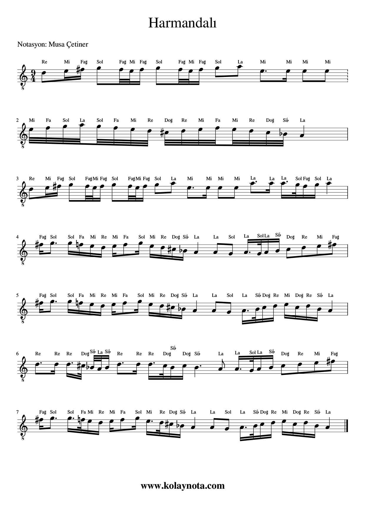 Harmandalı; Denizli yöresine ait bir türkü. Kolay Bağlama notasını göreceksiniz bu yazıda. Notaları sadece bağlama değil melodika, keman, flüt, org gibi çalgılarda da çalabilirsiniz. Başarılar.