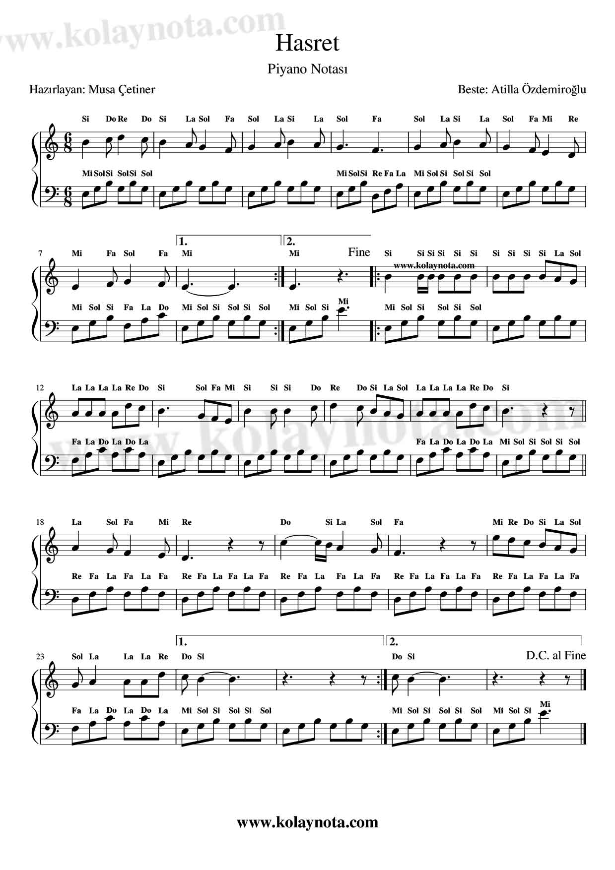 Sezen Aksu’nun Hasret şarkısını akor eşlikli olarak düzenledim. Aşağıdaki bağlantıdan çalınış videosuna da ulaşabilirsiniz. Başarılar.