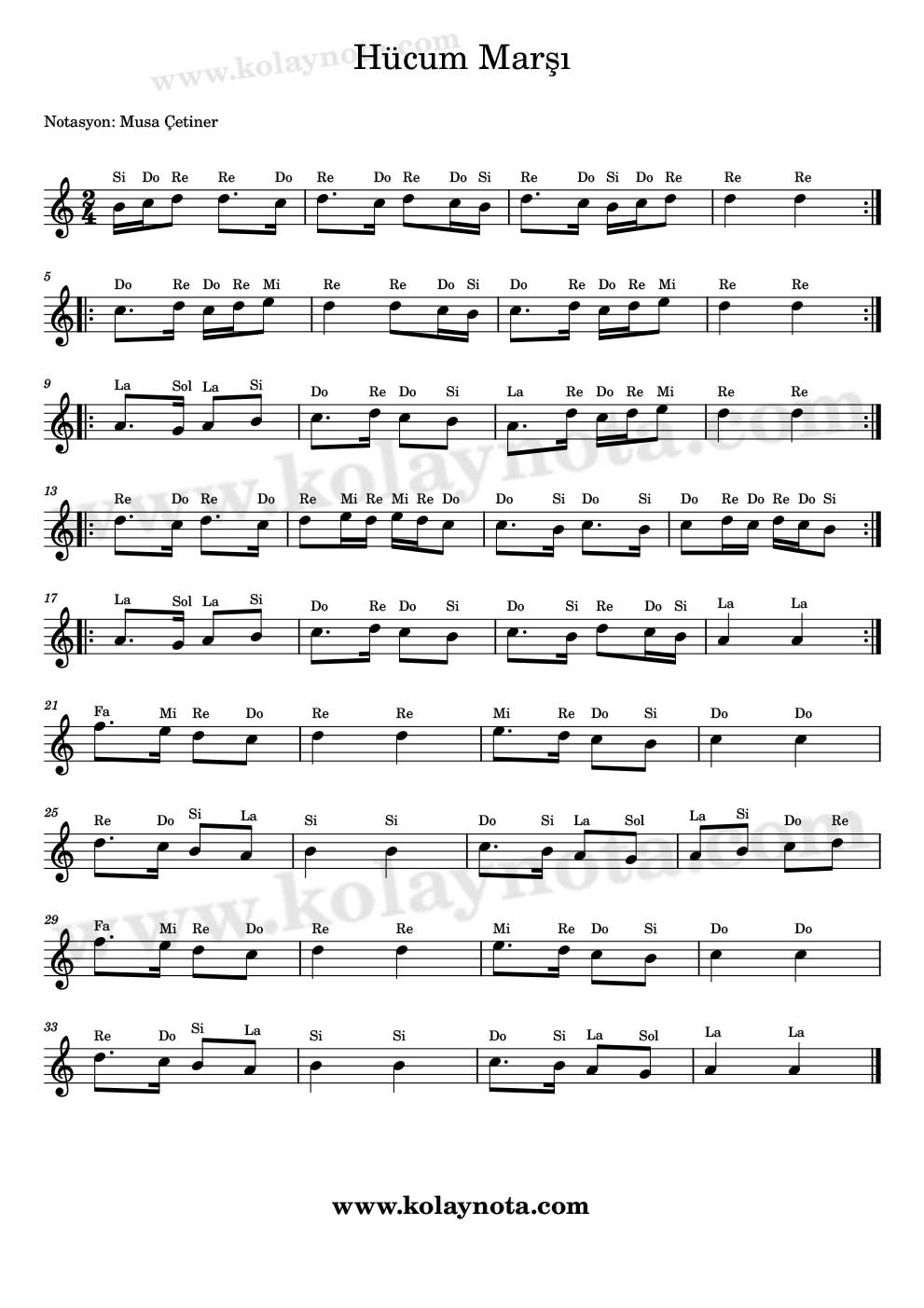 Hücum Marşı Kolay ve Do Re Mi Notaları