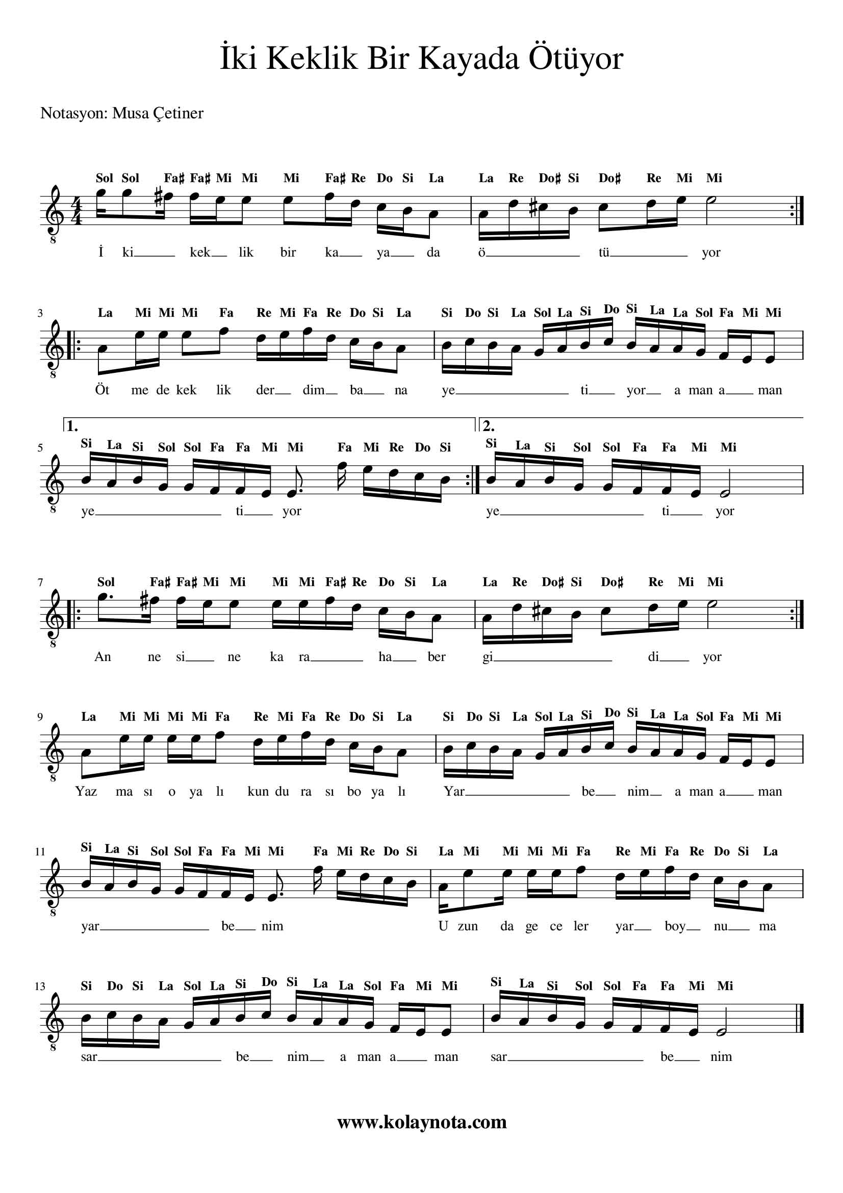 İki Keklik Bir Kayada Ötüyor – Kolay Nota by Musa Çetiner