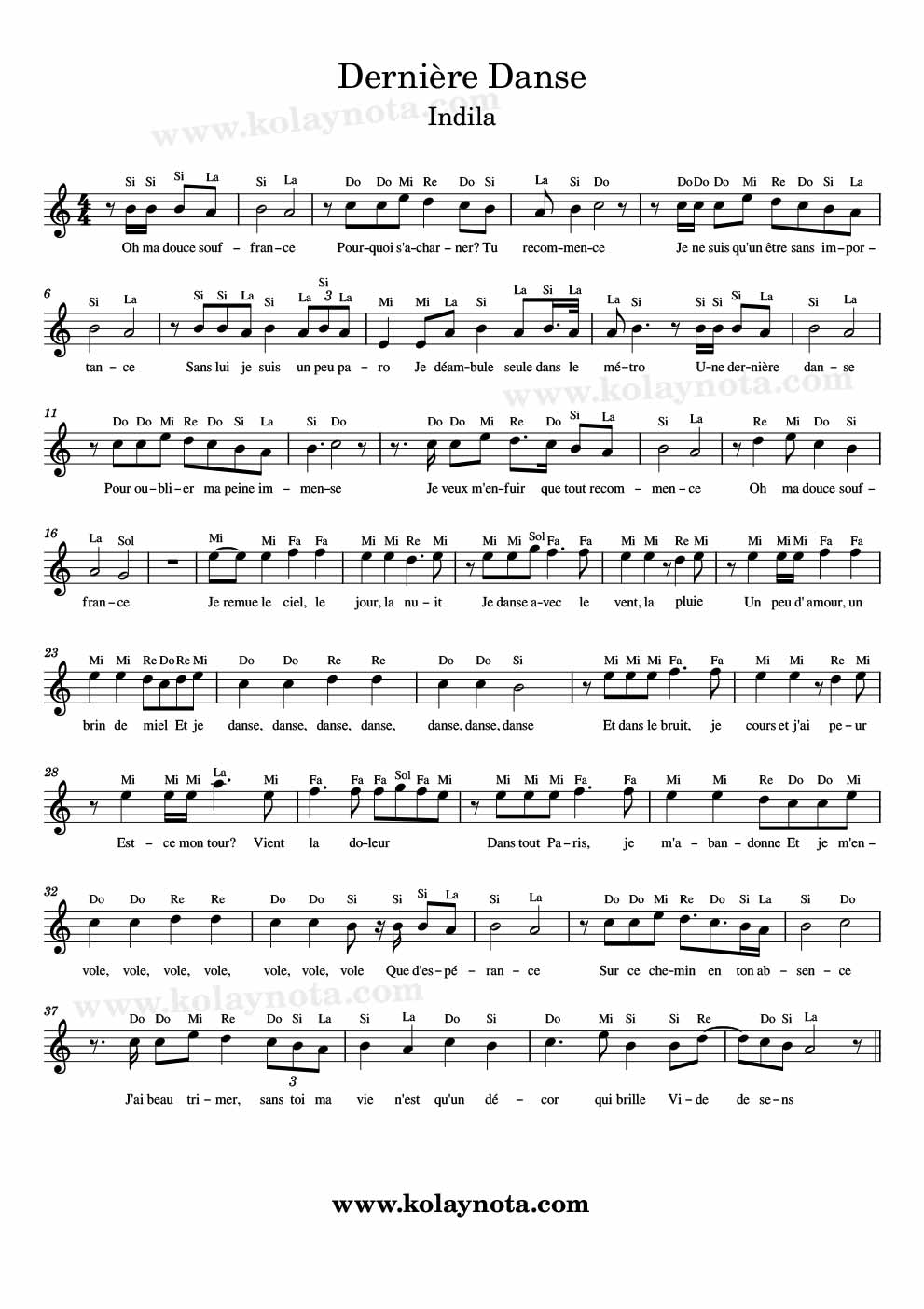 Dernière Danse, Nota. Indila’nın bir şarkısı. Şarkı sanatçının 2014 yılında çıkan “Mini World” albümünde yer almış. Do minör tonunda yorumlanmış. Ben La minör tonunda kolay nota ve piyano düzenlemesini paylaşacağım.