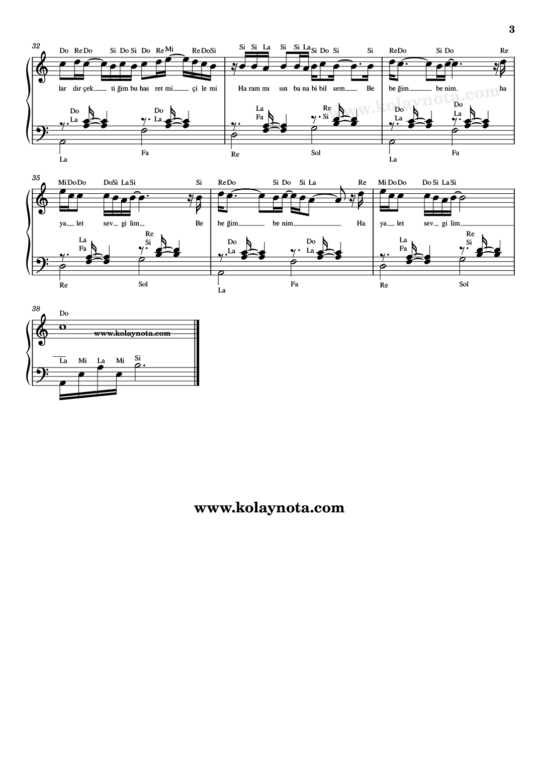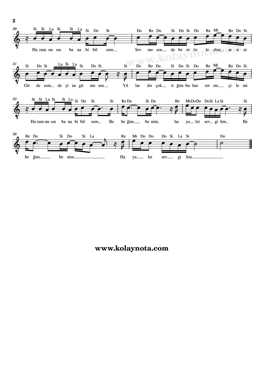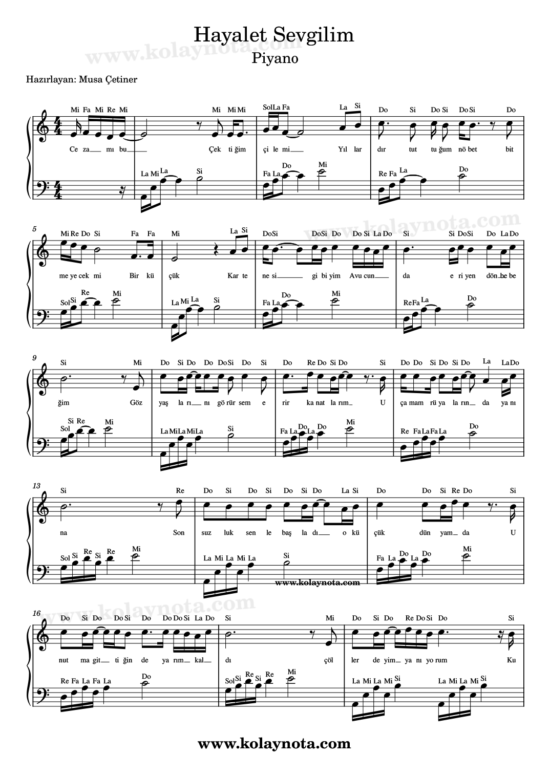 Hayalet Sevgilim – Kolay Nota