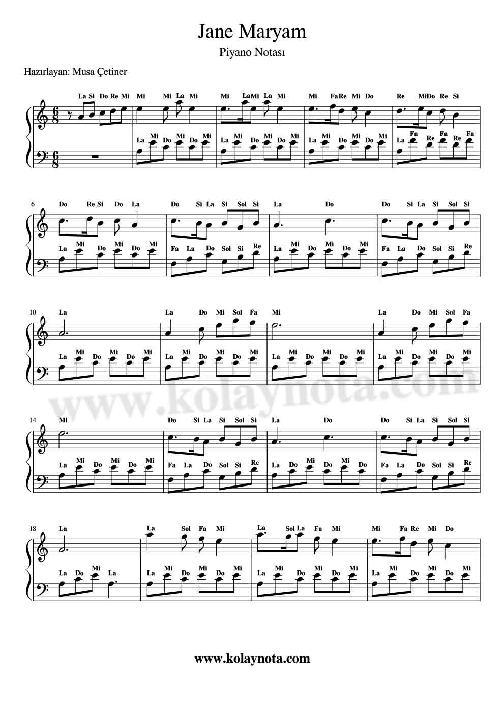 Jane Maryam piyano notalarını 2 versiyon olarak paylaşıyorum. Üstteki versiyon benim biraz daha basit olarak düzenlediğim. Alttaki versiyon ise Evgeny Grinko yorumu. Sanatçının yorumladığı ton Do Minör, çok sayıda bemol almış nota var. Yeni başlayan arkadaşlar zorlanacaktır. Videolarını da paylaşıyorum, izleyip daha kolay çalabilirsiniz umarım. Başarılar
