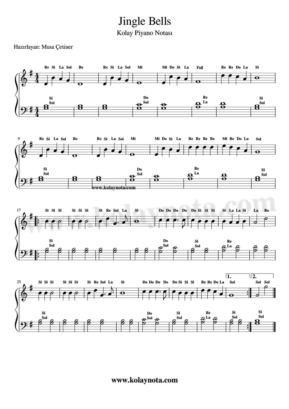Jingle Bells hepimizin bildiği, yılbaşı temalı bir şarkı. 3 versiyon paylaşacağım. Üstteki versiyon Sol majör tonunda, akorlu kolay piyano olarak hazırladım. Akorlar 2 sesli, sol elde zorlanmadan çalabilirsiniz. Bu düzenlemenin video linkini de ekleyeceğim. Youtube kanalıma abone olursanız sevinirim. Teşekkürler.